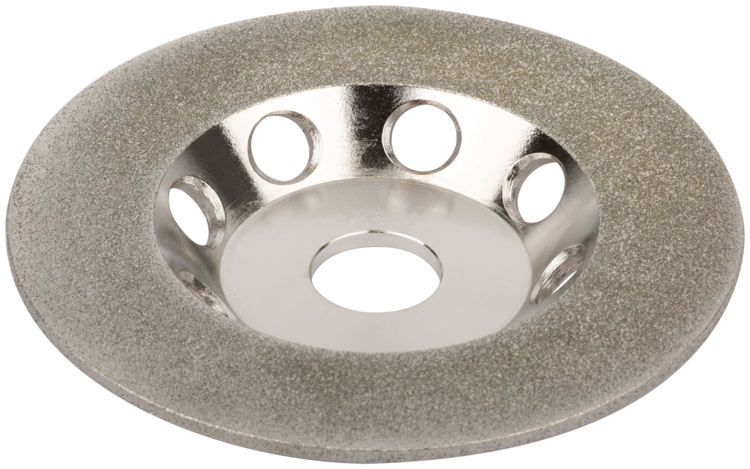 Для шлифования кромок стекла, кафеля, фарфора и др. Для углошлифовальных машин. Посадочный диаметр 22 мм. Материал: рабочая поверхность гальванизирована порошком из технических алмазов.