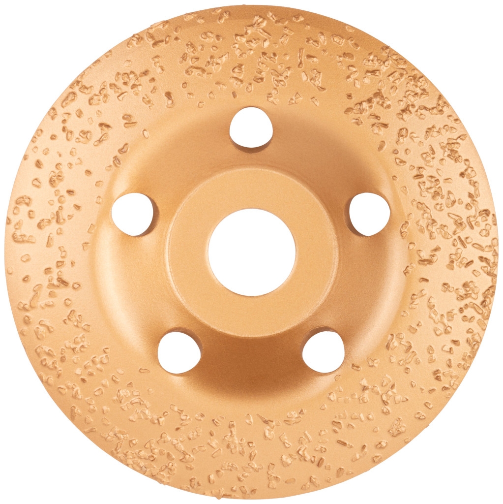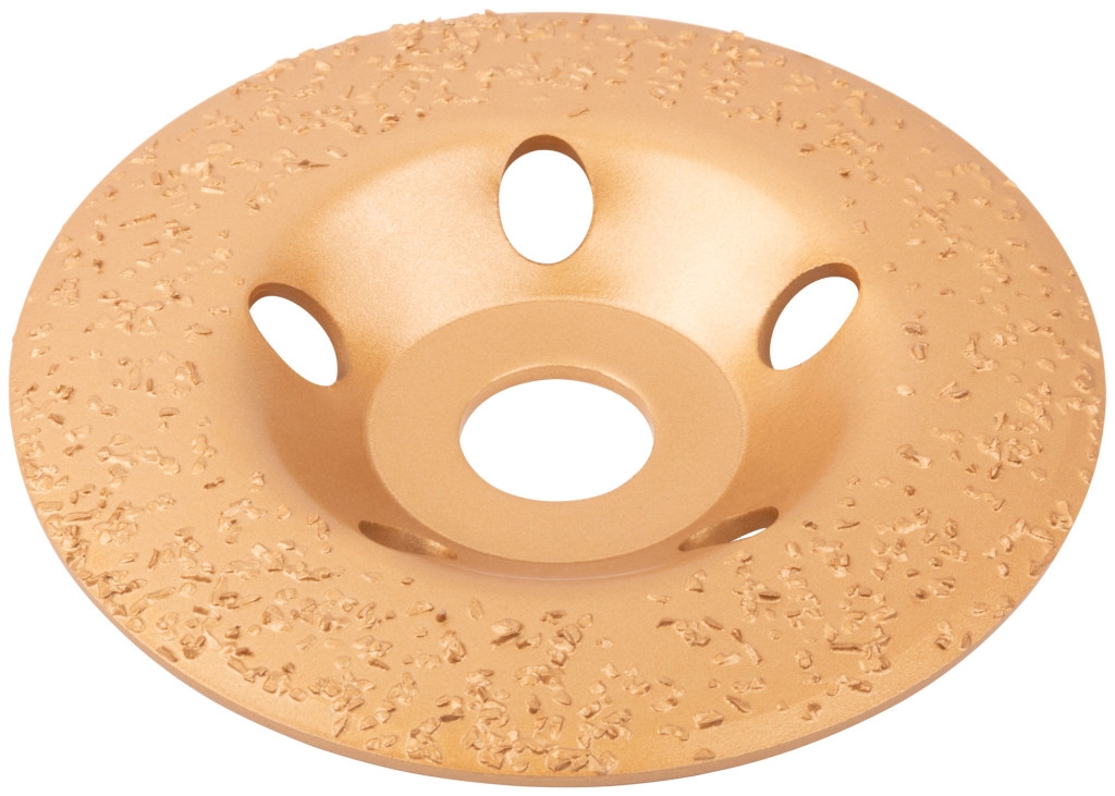 Диск твердосплавный шлифовальный торцевой наклонный. Повышенный ресурс. Для грубых первичных работ. Для придания формы и предварительного выравнивания древесины твердых и мягких пород, кирпича, песчаника, газобетона и других поверхностей, изготовленных из мягкого искусственного и натурального камня. Наклонная форма удобна при фигурной обработке и выборке формы в древесине. Материал: инструментальная сталь, напайки из карбида вольфрама. Упаковка: картонная коробка.