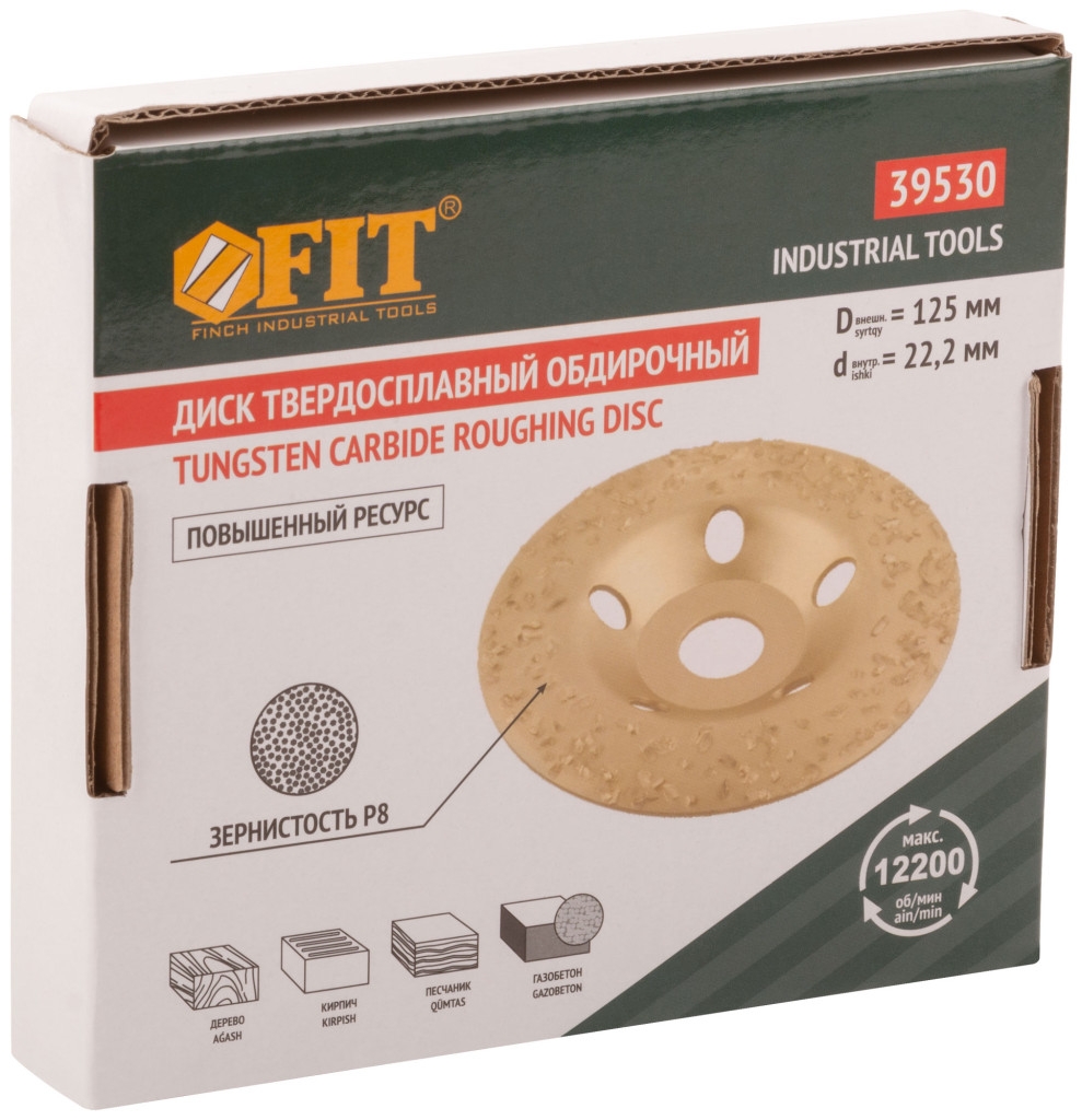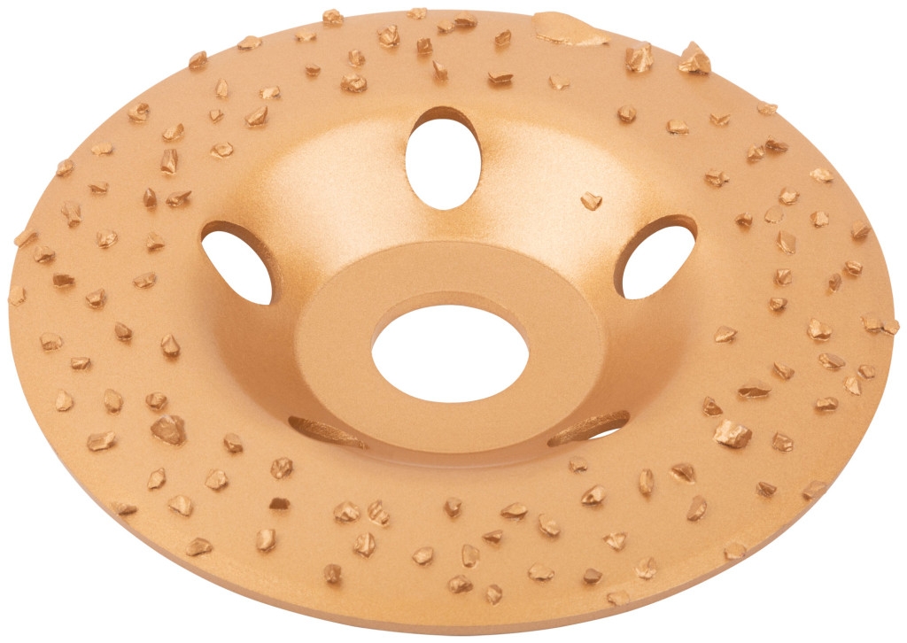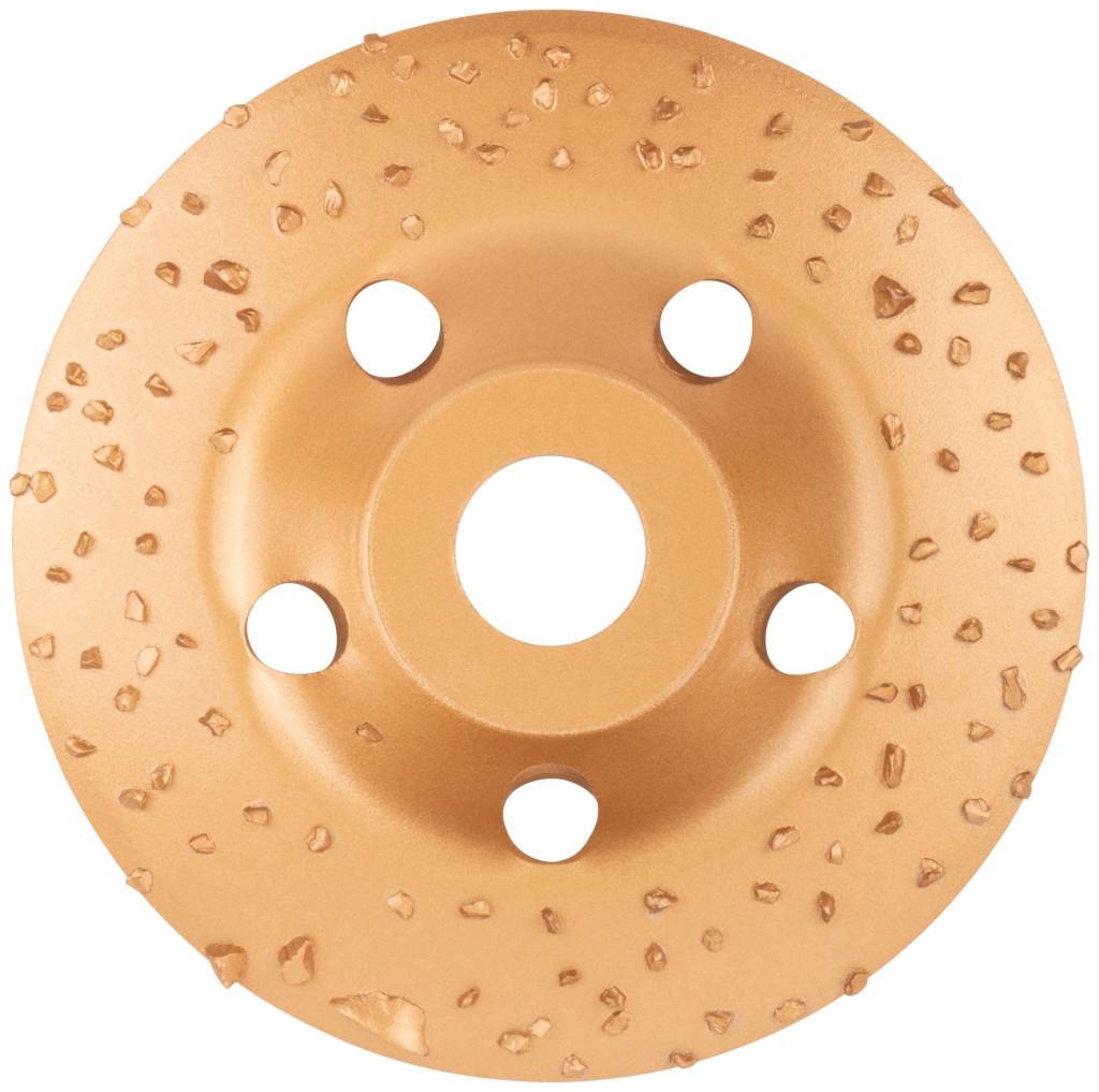 Диск твердосплавный шлифовальный торцевой наклонный. Повышенный ресурс. Для грубых первичных работ. Для придания формы и предварительного выравнивания древесины твердых и мягких пород, кирпича, песчаника, газобетона и других поверхностей, изготовленных из мягкого искусственного и натурального камня. Наклонная форма удобна при фигурной обработке и выборке формы в древесине. Материал: инструментальная сталь, напайки из карбида вольфрама. Упаковка: картонная коробка.