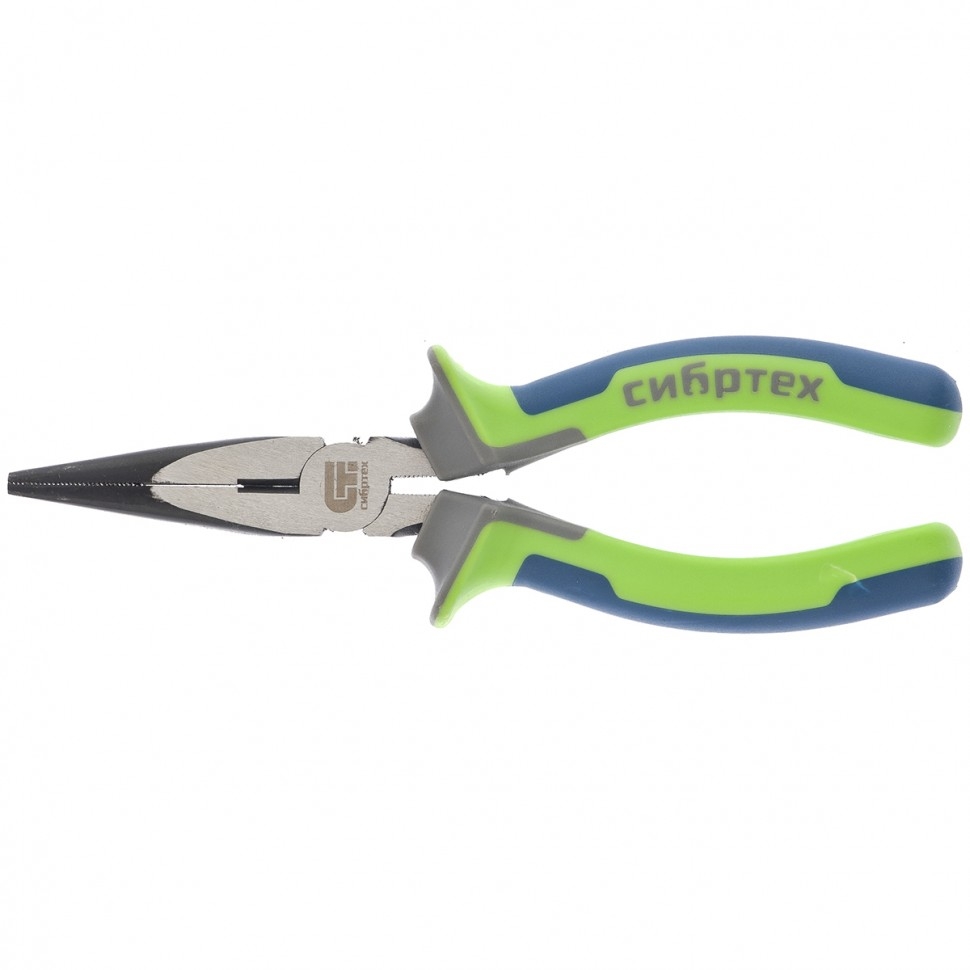 Длинногубцы прямые, фосфатирование, трехкомпонентные рукоятки 160 мм Сибртех