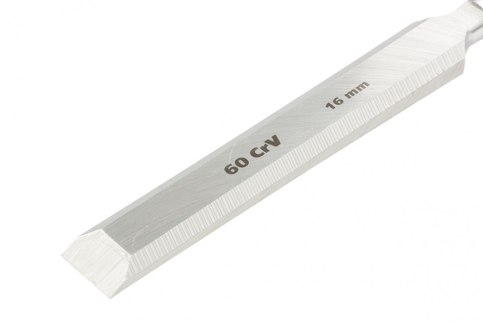 Длительное сохранение режущих свойств — долото-стамеска обладает твердостью 65 HRC (0,7 длины рабочей части полотна), острое, как бритва, лезвие обработано на заводе под углом 20-35°, повторная заточка потребуется минимум через 6 месяцев.