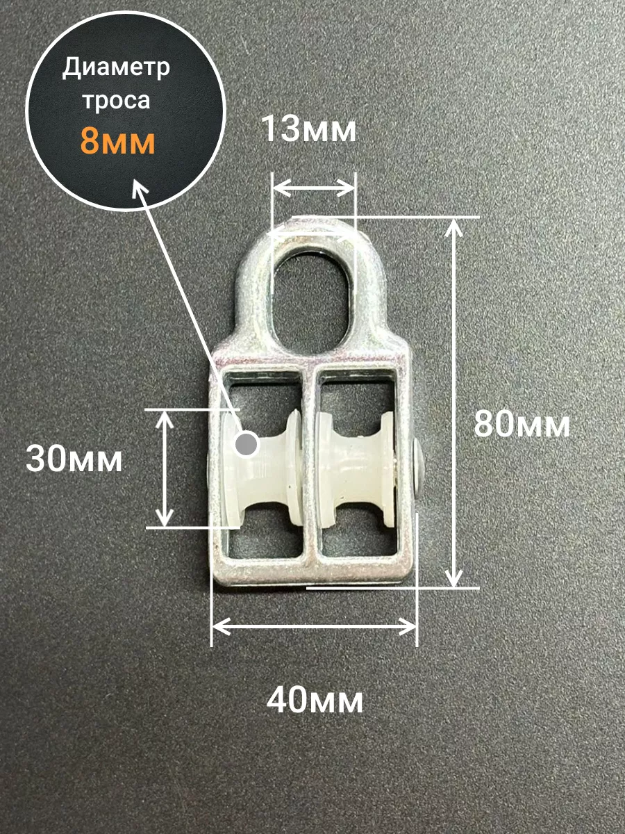 Двойной блок ролик 30 мм/8 с пластиковым шкивом, 1 шт.