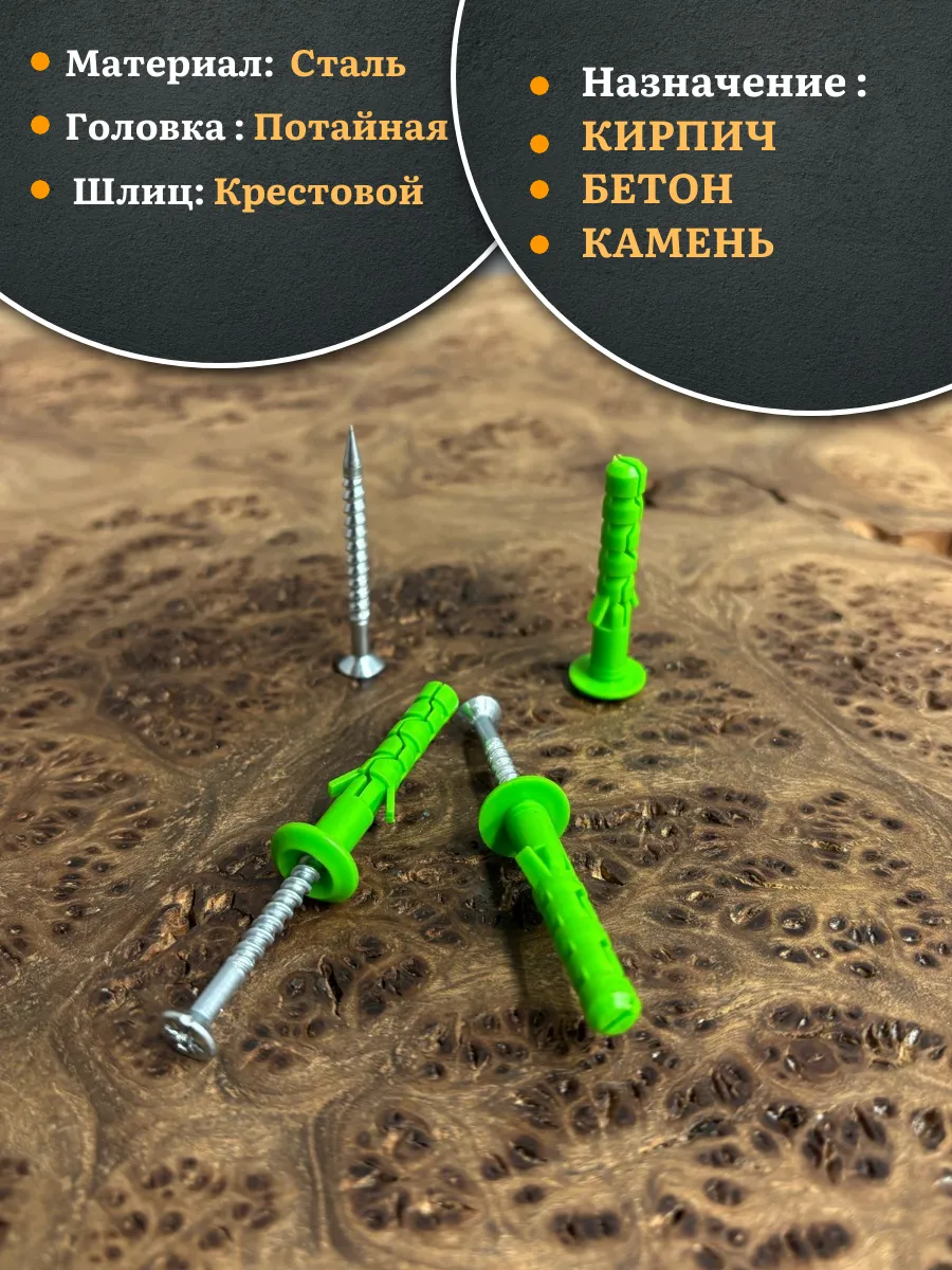 | Дюбель с шурупом ГРИБ 6х60 зеленый, 100 шт | РКГ00016686ф100 | 1 шт. |