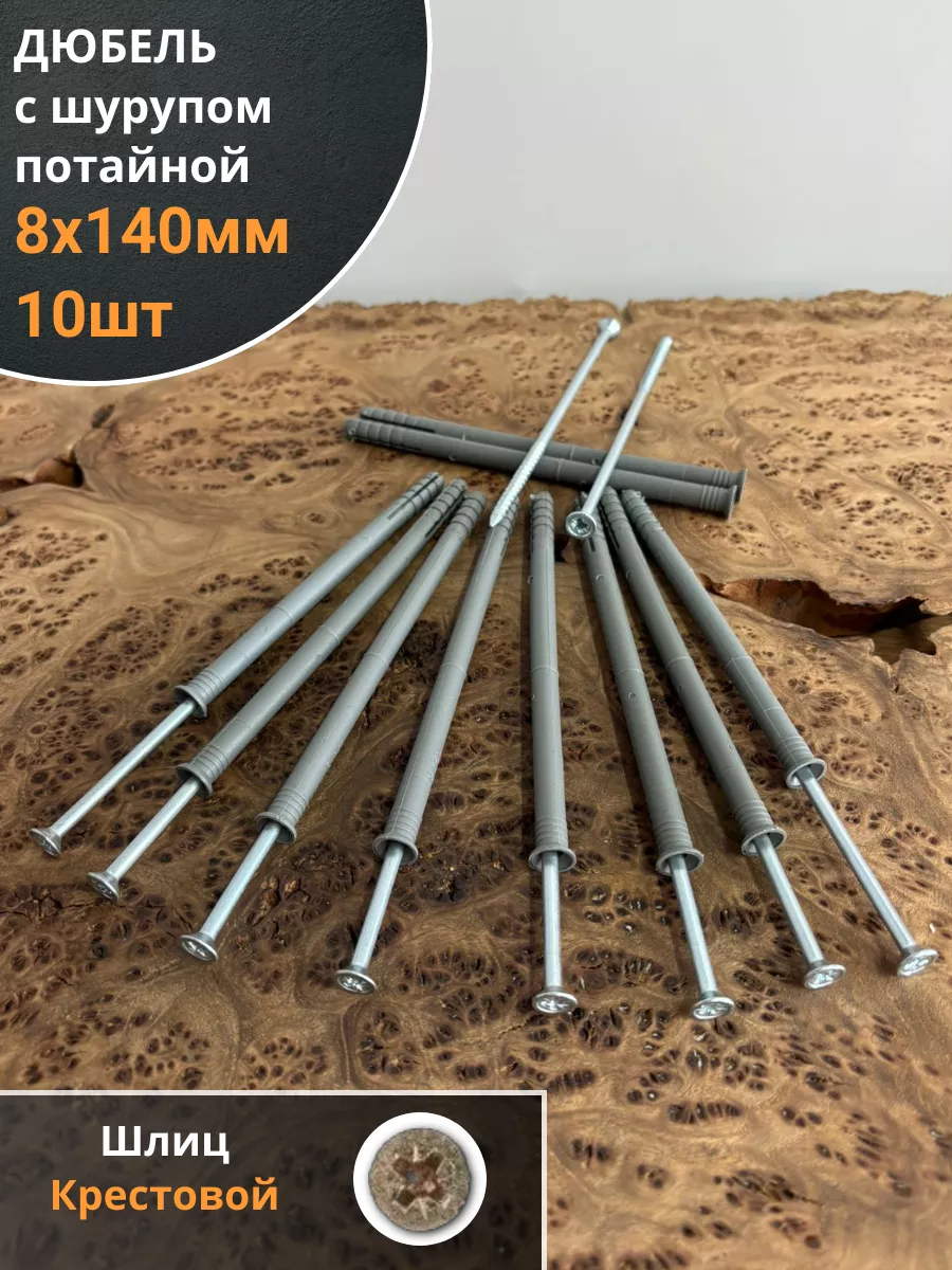 Дюбель с шурупом потайной 8х140
