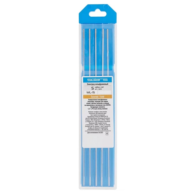 Электроды вольфрамовые WC-15 d.2,0 золотые SOLARIS