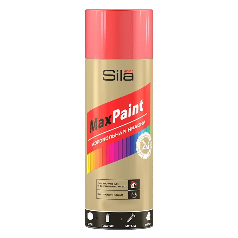Аэрозольная краска Sila HOME Max Paint — это универсальная акриловая краска в баллончике, предназначенная для декоративного окрашивания различных поверхностей: металлических, деревянных, пластиковых, кирпичных и бетонных. Она подходит для нанесения на предварительно загрунтованные поверхности и отличается быстросохнущим эффектом.