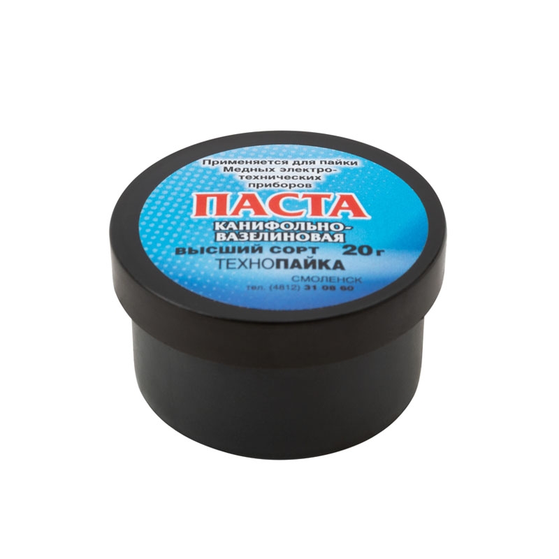 Флюс Паста с канифолью низкотемпературный нейтральный флюс, баночка 20гр. эффективно применяется для пайки современной промышленный и бытовой радио-электроаппаратуры, проводов, меди, латуни, бронзы и их сплавов. Рекомендованная t пайки 180-300С. Не вызывает коррозии и разрушения радиоэлементов, оставляет защитную пленку после применения.