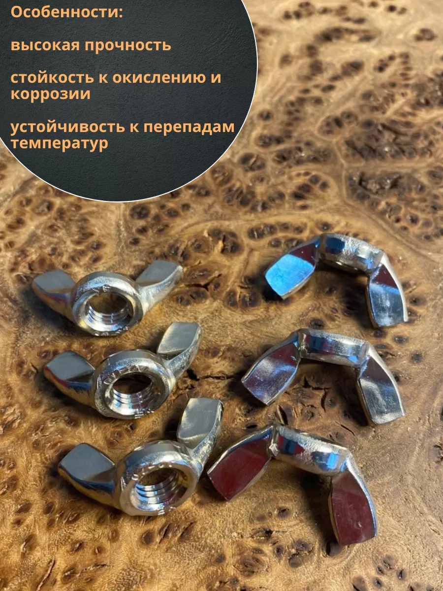 Гайка барашковая нержавеющая М8 DIN315 , 10 шт.
