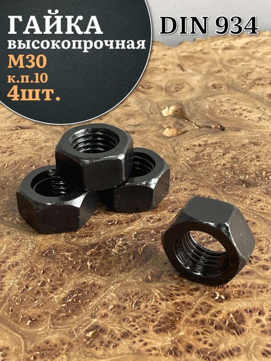 Гайка черная М30 высокопрочная к.п.10 DIN934, 4 шт.