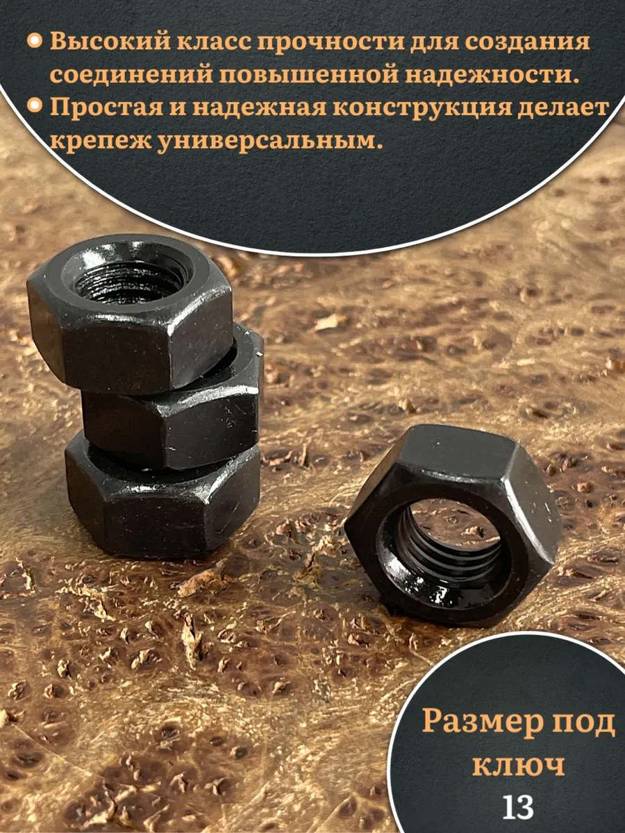Гайка черная М8 высокопрочная к.п.10 DIN934, 20 шт.