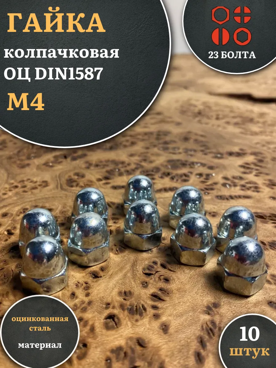 Гайка колпачковая М4 ОЦ DIN1587 , 10 шт.