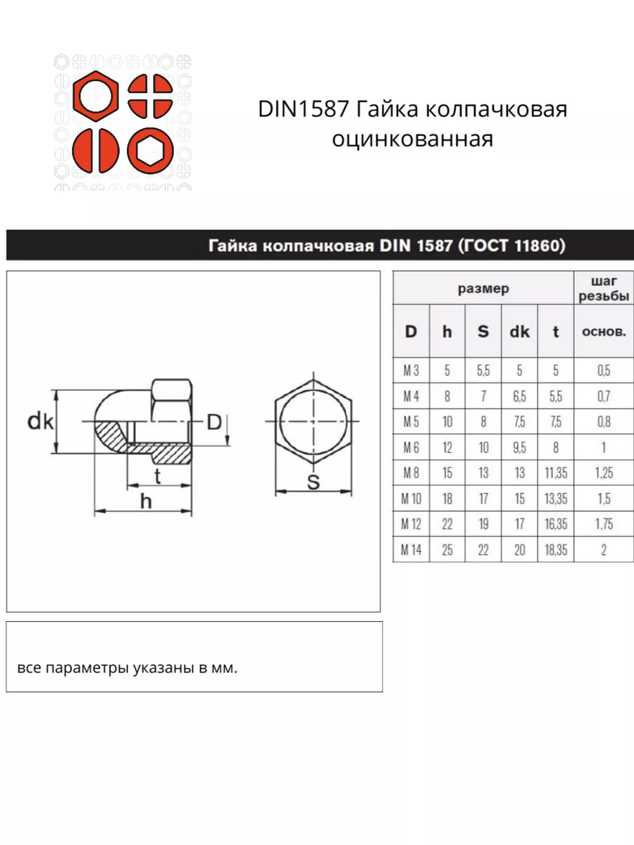 Гайка колпачковая М6,8,10 ОЦ DIN1587 (по 50 шт.)