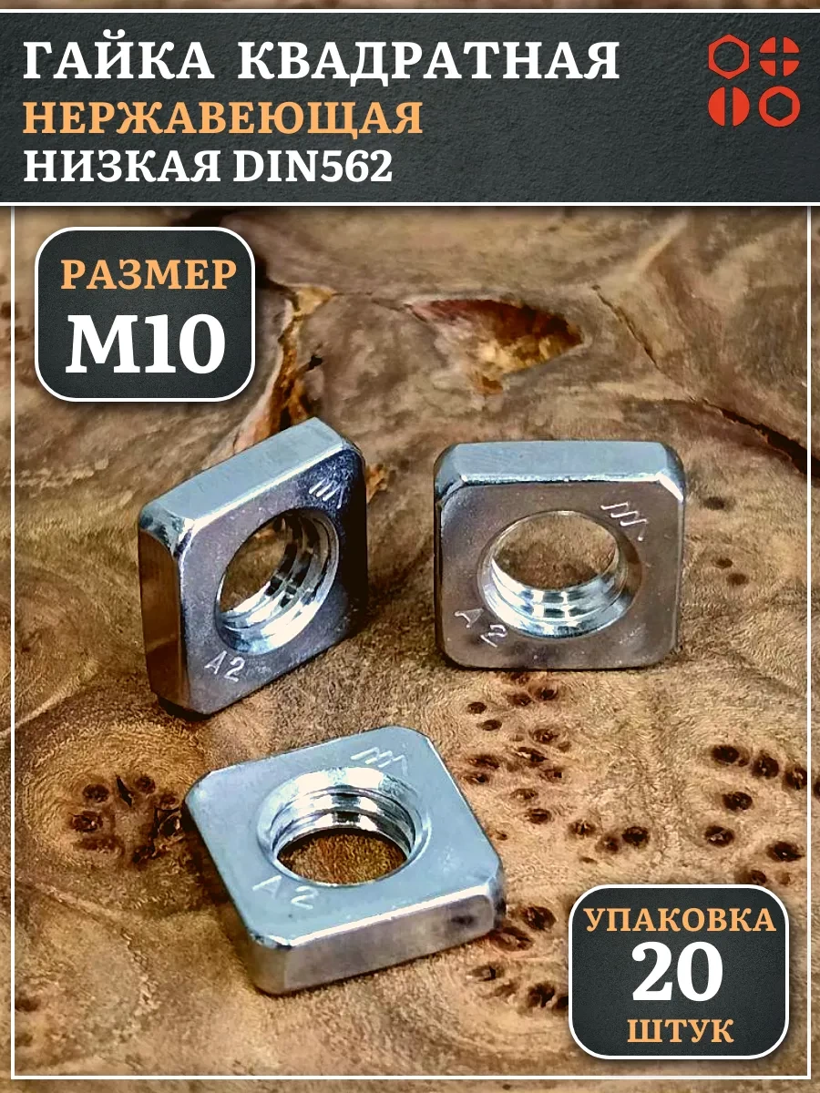 | Гайка квадратная М10 нержавеющая низкая DIN562, 10 шт. | 00-00000429ф10 | 1 шт. |