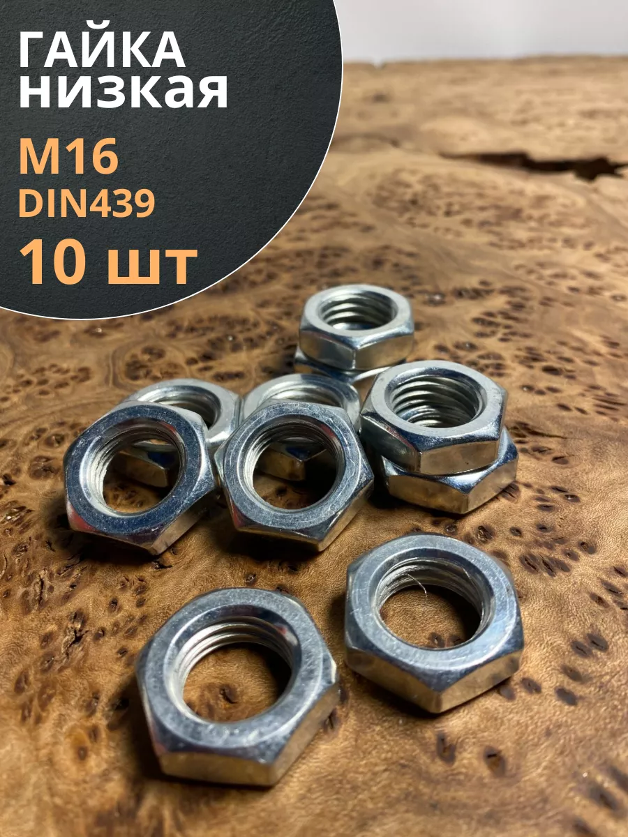 Гайка М16 шестигранная низкая DIN 439 , 10 шт.