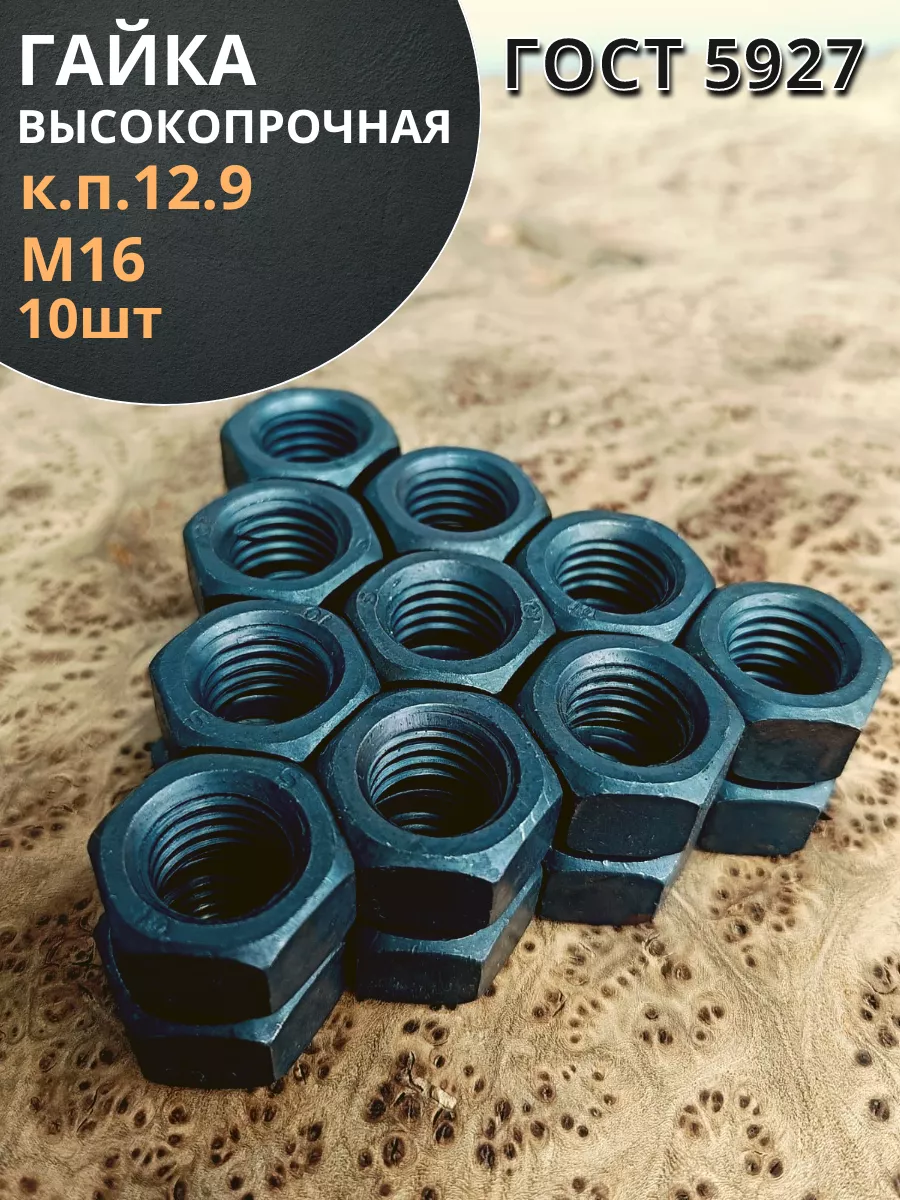 Гайка М16 высокопрочная черная к.п.12.9 DIN934,10 шт.