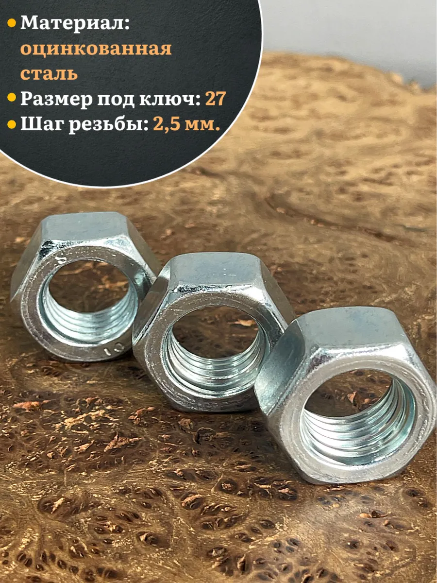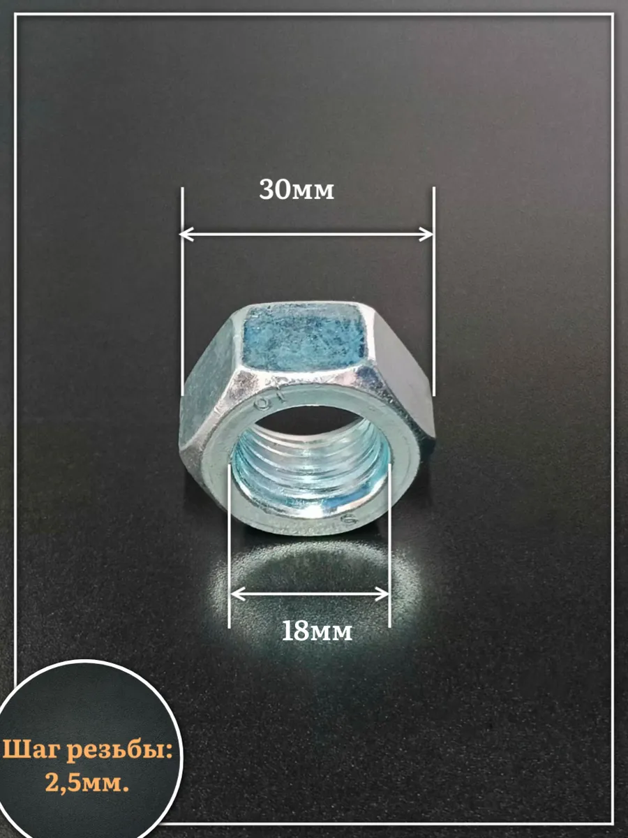 Гайка М18 высокопрочная оцинкованная к.п.10 DIN934, 10 шт.
