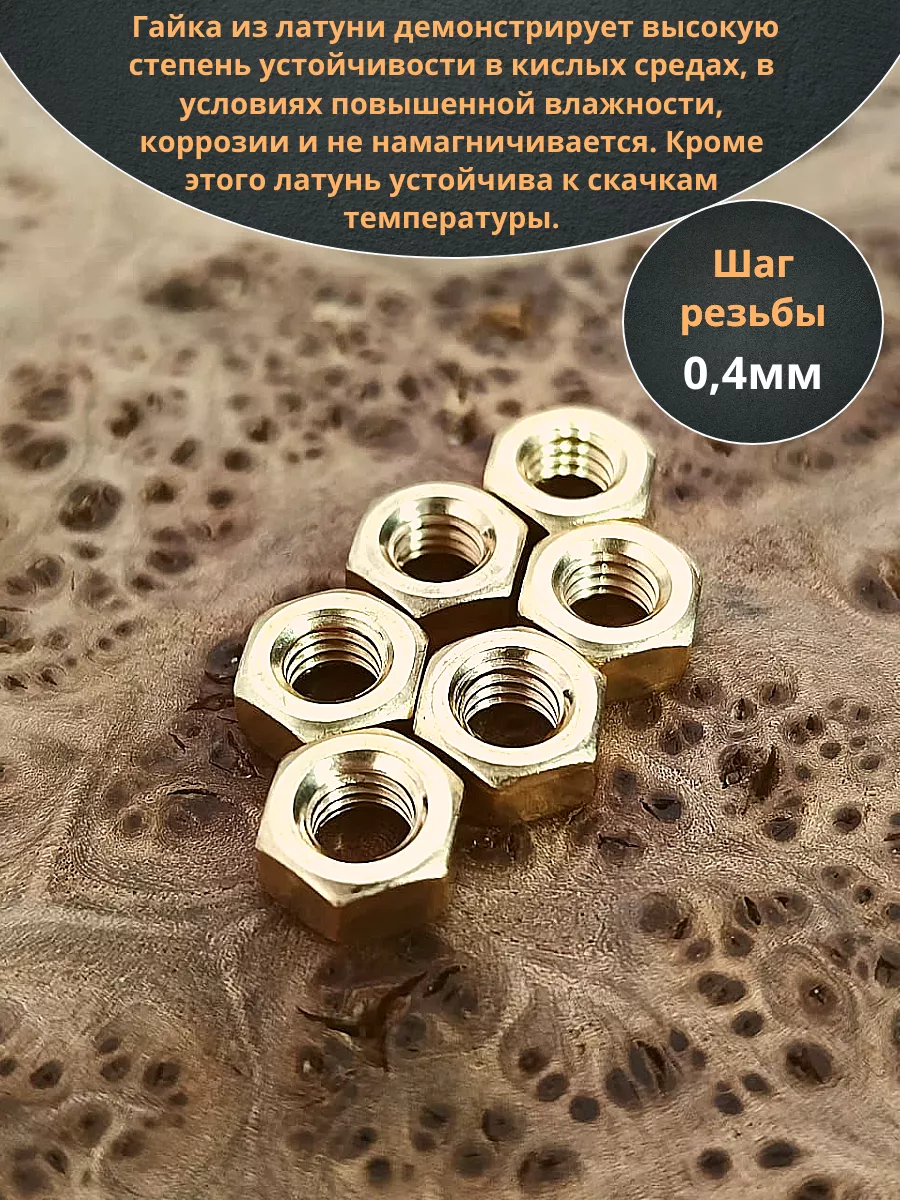 Гайка М2,5 латунная DIN934,10 шт