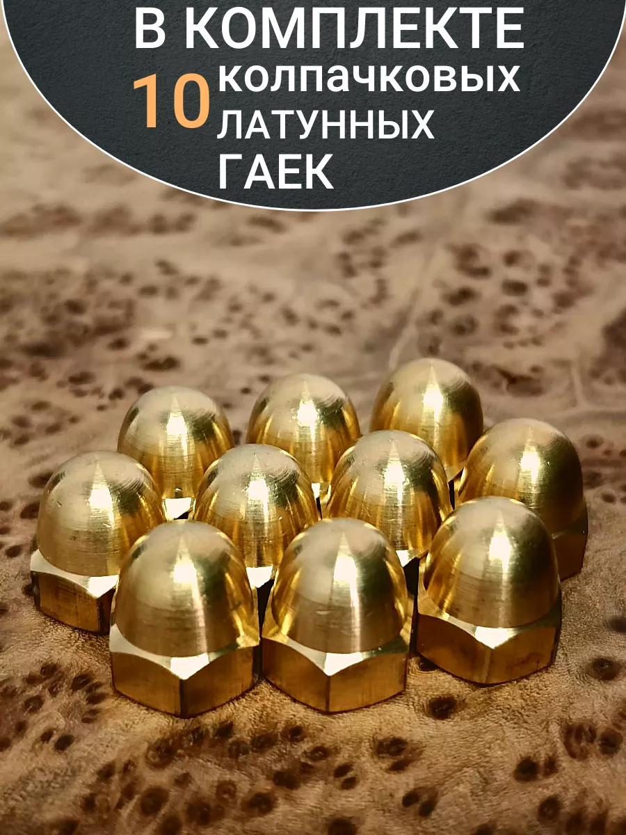 Гайка М4 латунная колпачковая DIN1587, 10 шт.