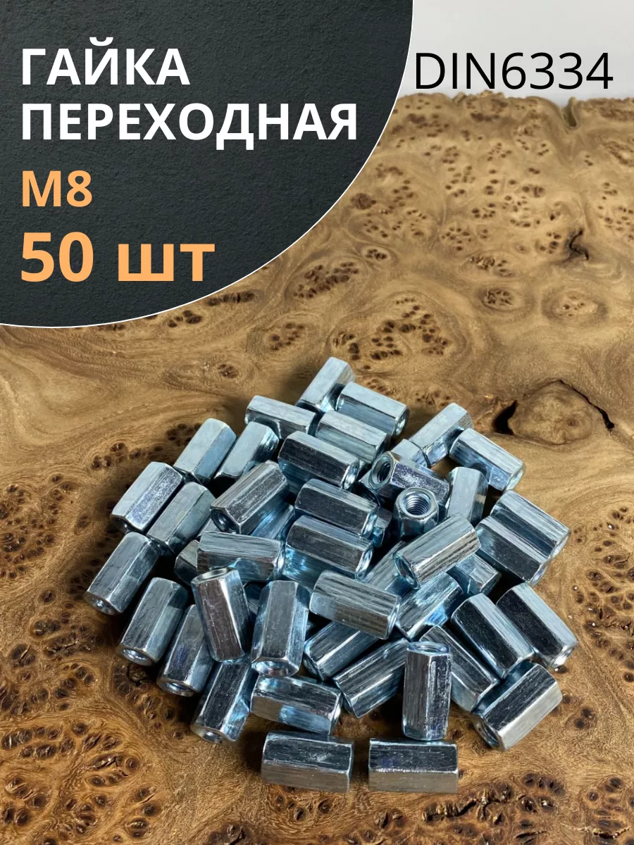 Гайка переходная М8 ОЦ DIN6334, 50 шт.