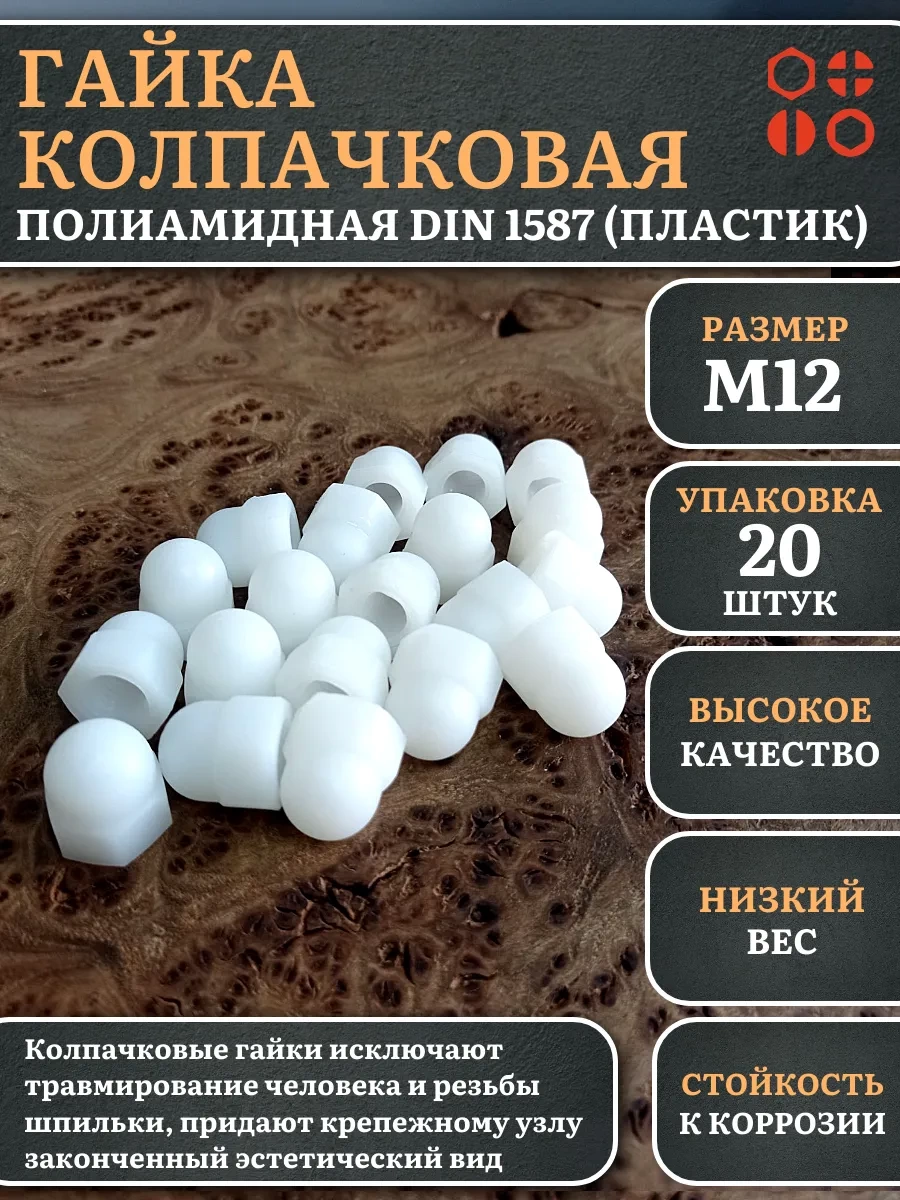 | Гайка полиамидная колпачковая (пластик) М12 DIN1587, 10 шт. | 2000000644240ф10 | 1 шт. |