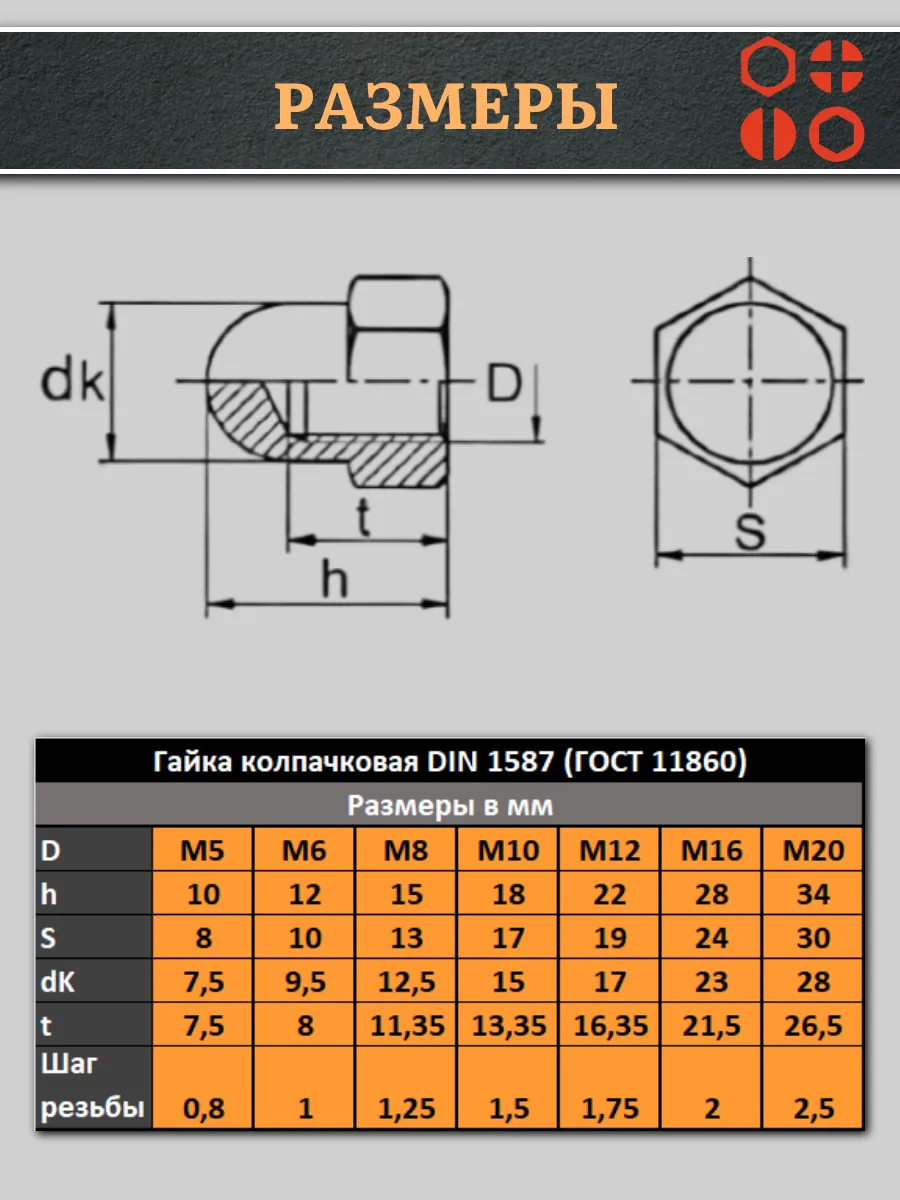 Вид гайкиКолпачковая
