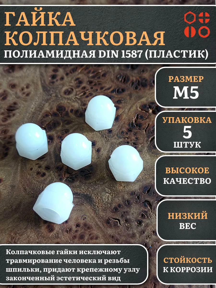 Гайка полиамидная колпачковая (пластик) М5 DIN1587, 5 шт.