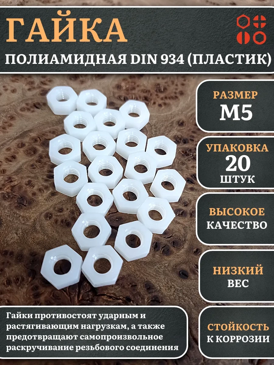 Гайка полиамидная М5 DIN934 (пластик), 20 шт.