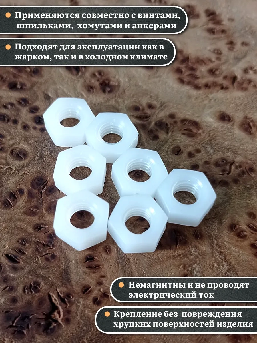 Гайка полиамидная М6 DIN934 (пластик), 20 шт.