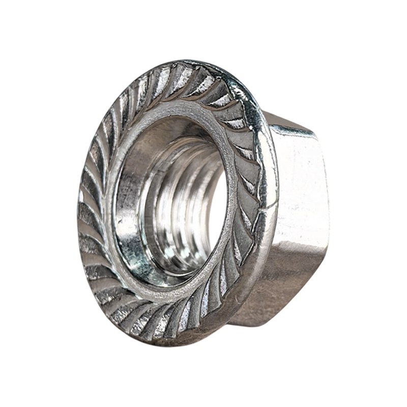 Гайка с фланцем это обычная шестигранная гайка в нижней части которой выполнено уширение (буртик) с насечками или без них. Применение гаек с фланцем значительно ускоряет процесс сборки, поскольку не требуется время на подкладывание шайбы. Фланец по диаметру больше гайки. Фланцевые гайки находят широкое применение в автомобилестроении, при производстве бытовых инструментов и техники, оборудования для пищевой, химической промышленности. Крепеж изготавливается из нержавейки А2 или А4, могут подвергнуть газотермическому цинкованию.
