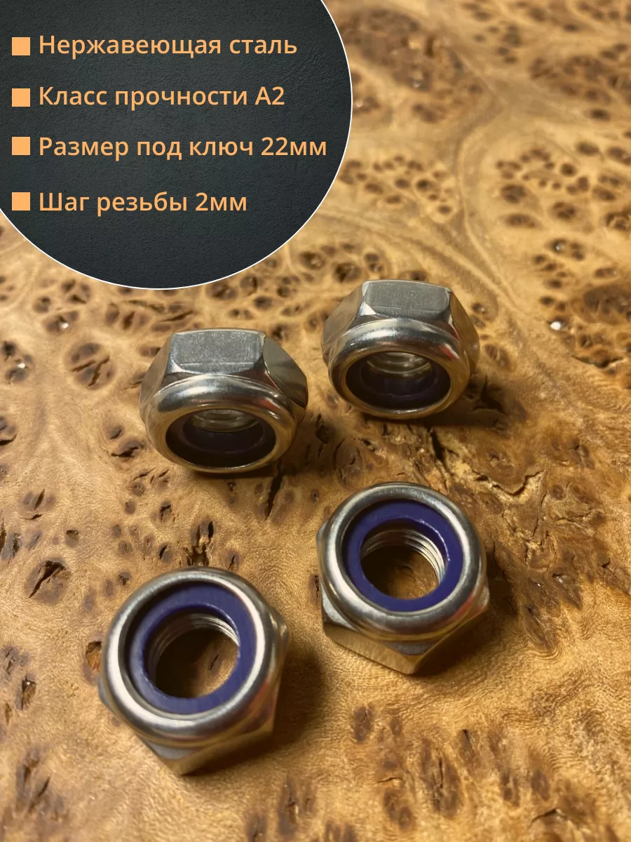 Гайка со стоп кольцом М14 нержавеющая, DIN985, 10шт.