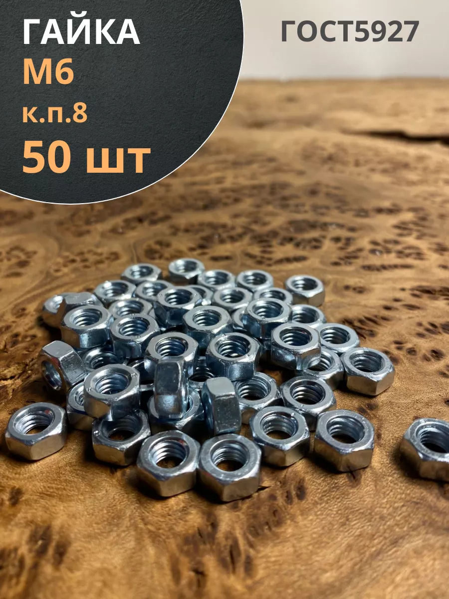 Гайка высокопрочная М6, оцинкованная к.п.8 DIN934 (50 шт.)