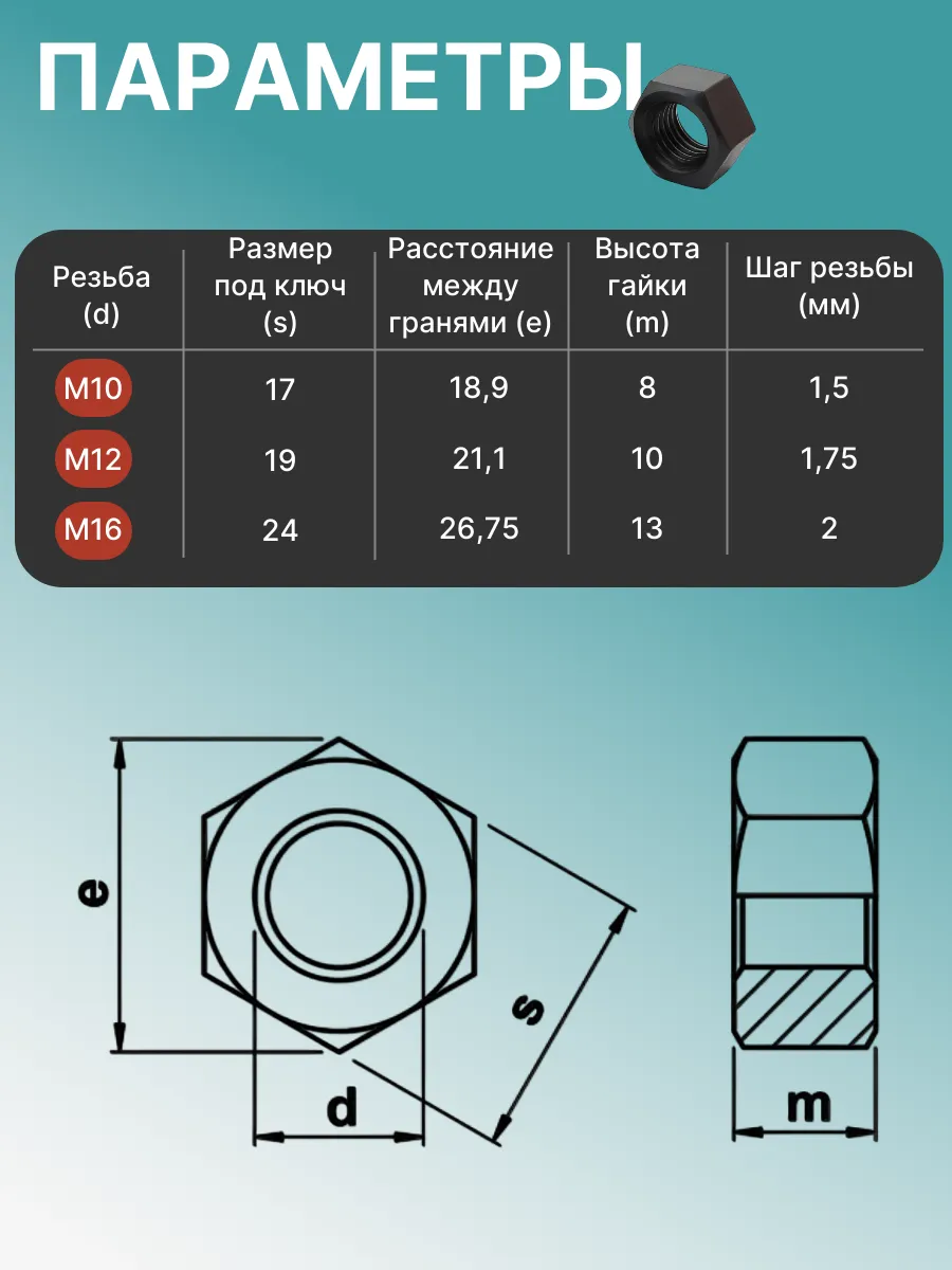 Гайка М10 класс прочности 12.9 DIN 934 - 20 шт