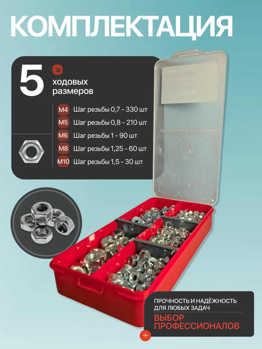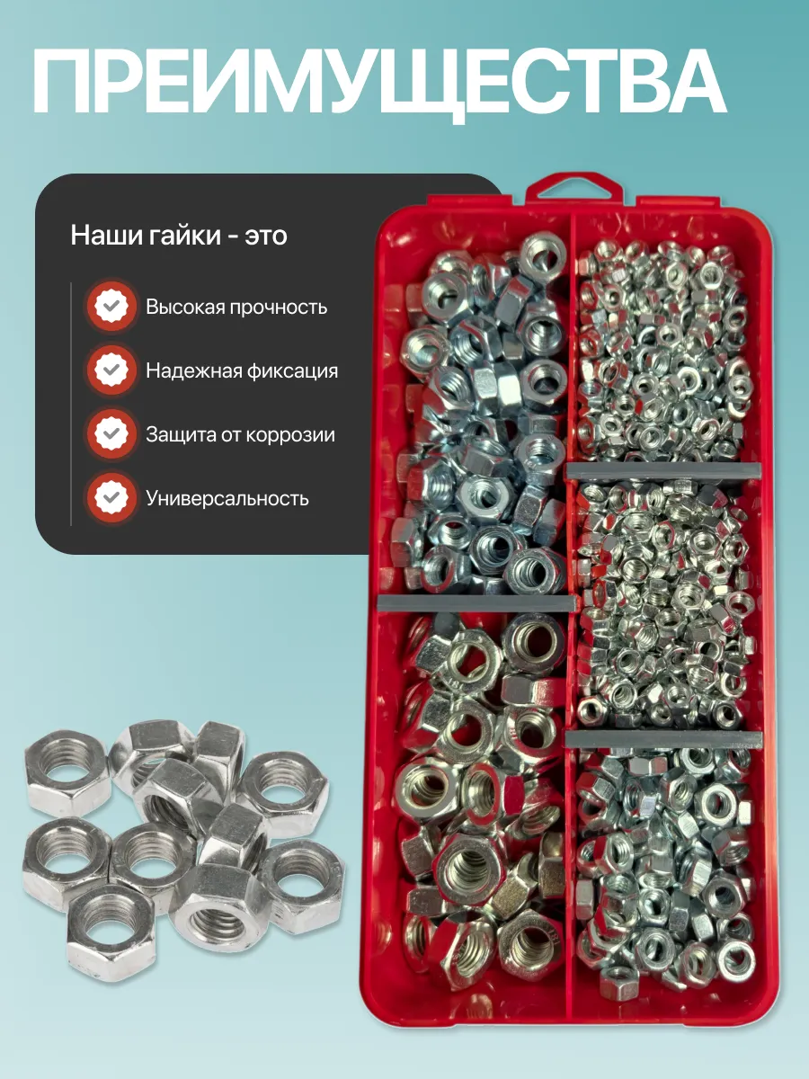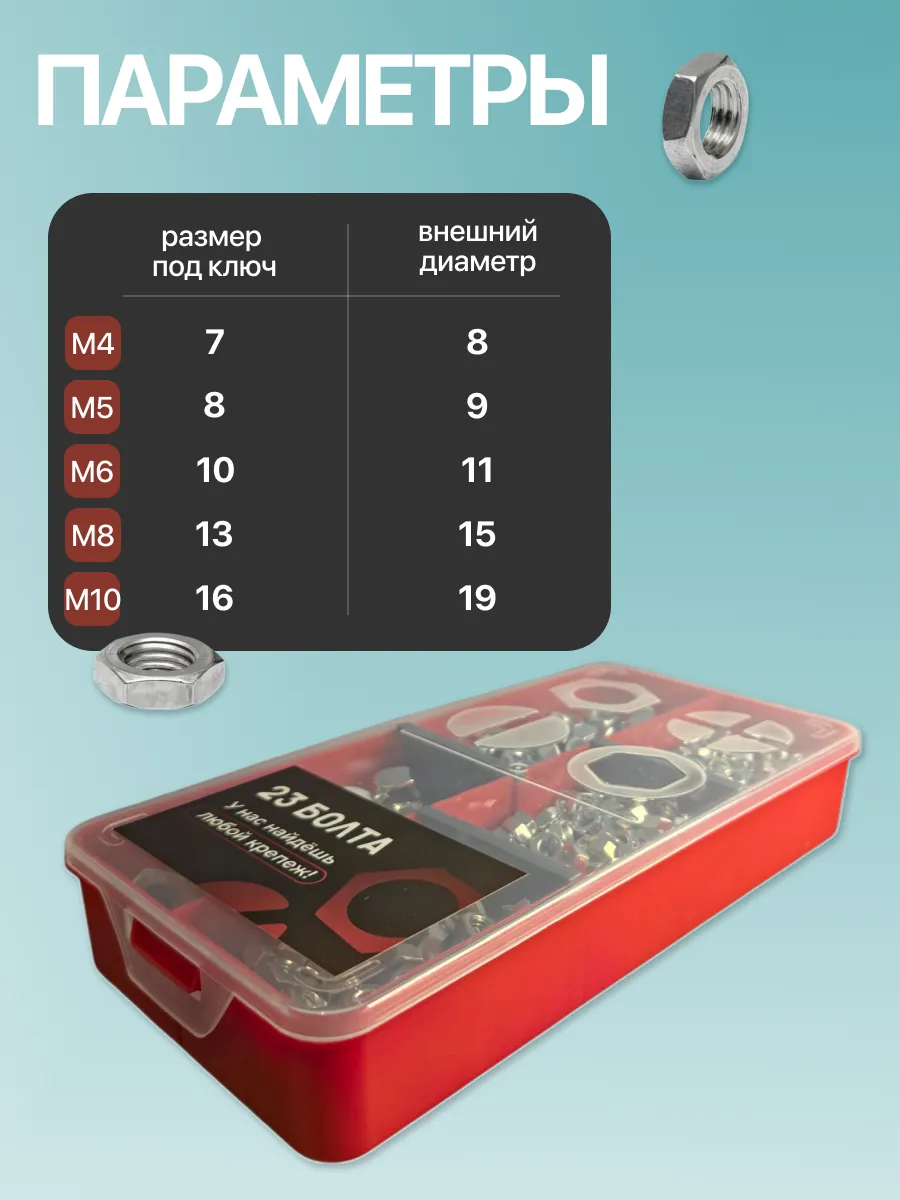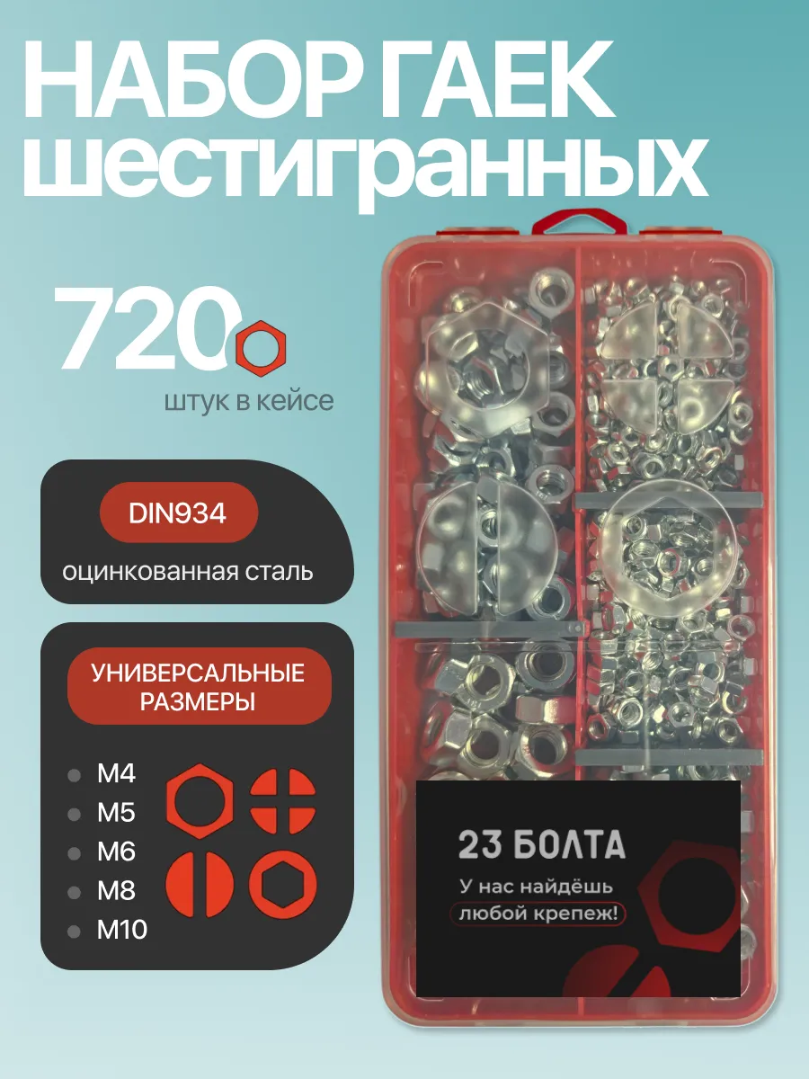 Гайки ОЦ DIN934 М4,5,6,8,10 в органайзере НАБОР 1