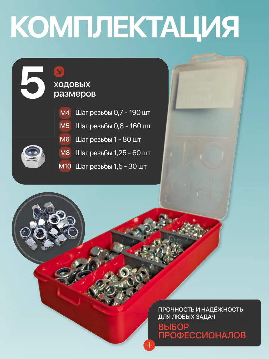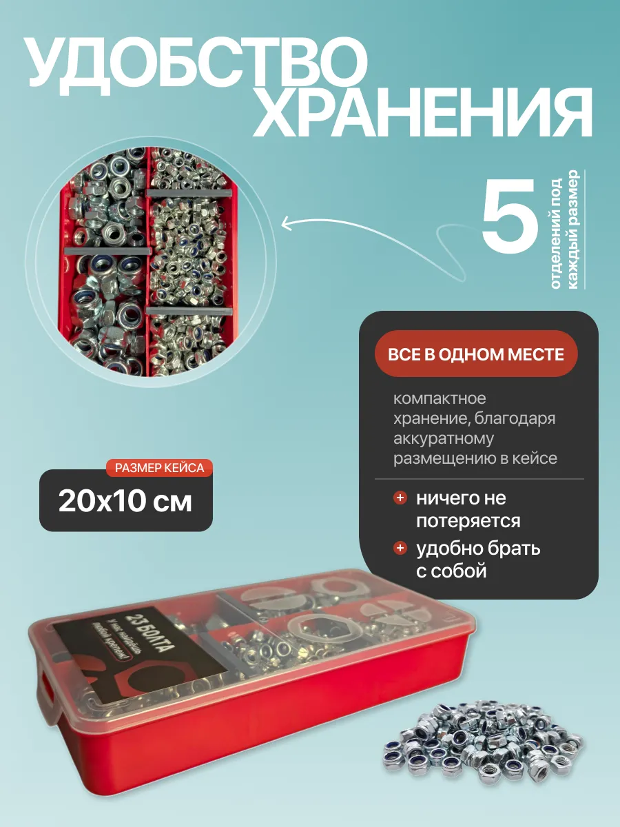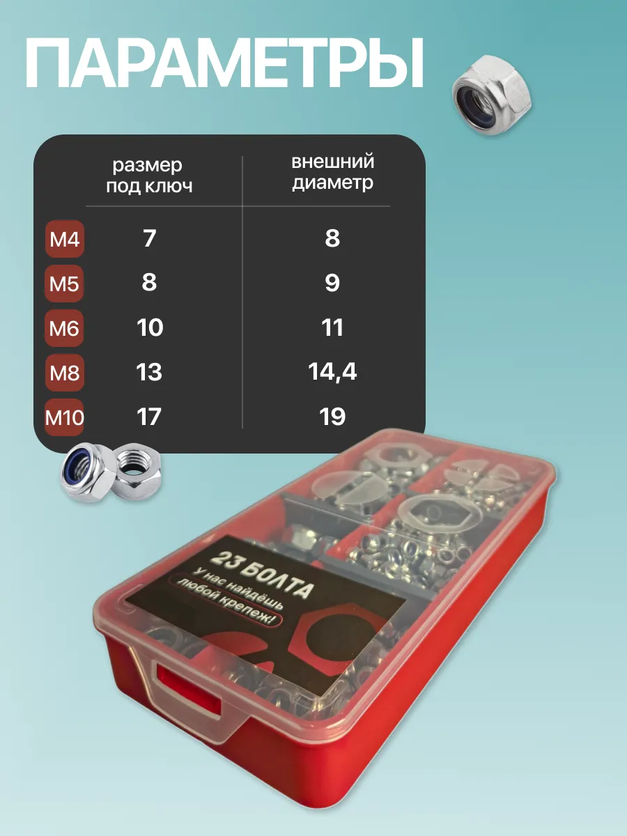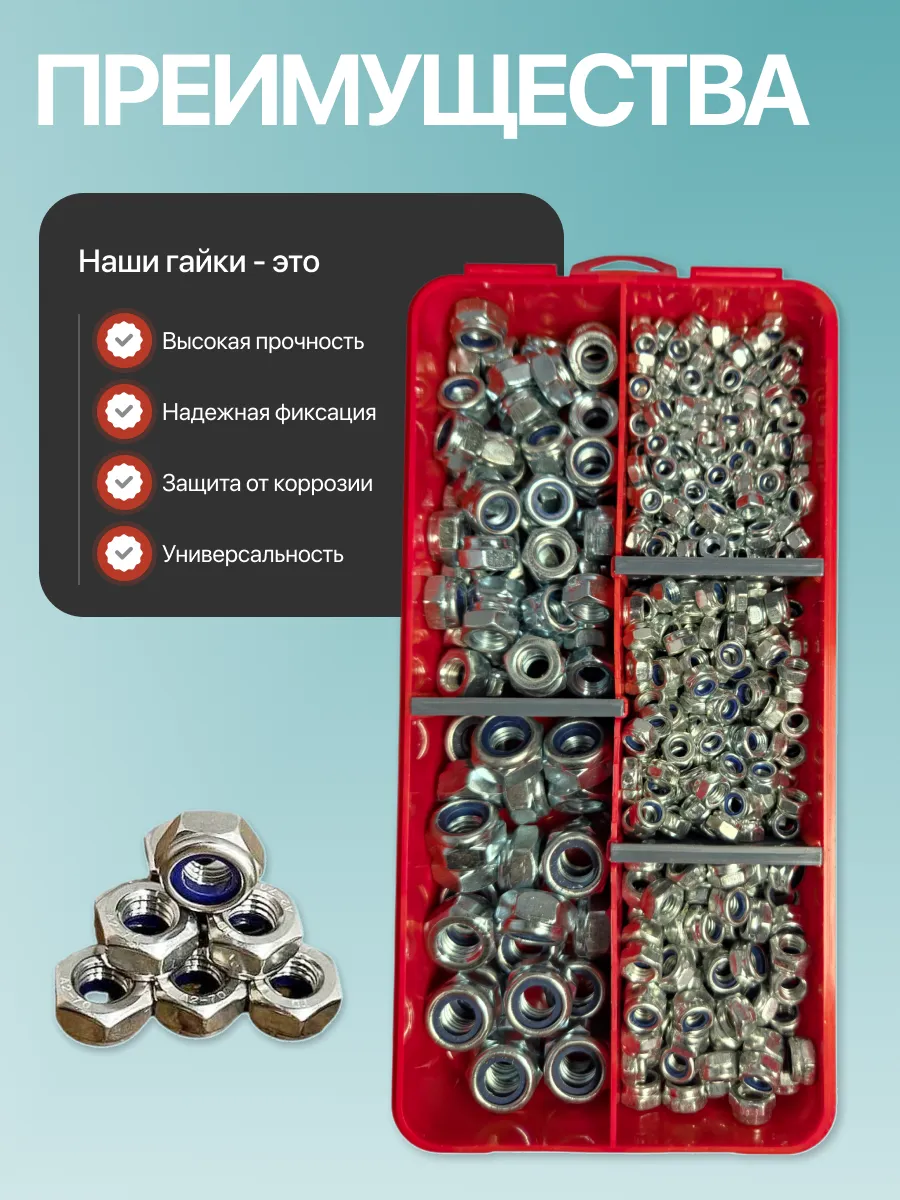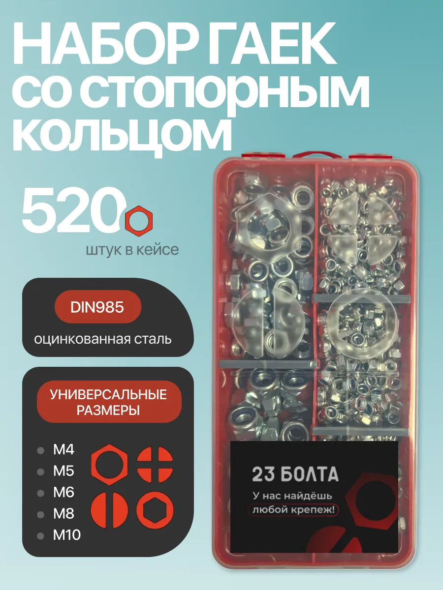 Гайки стопорные ОЦ М4,5,6,8,10 в органайзере НАБОР 1