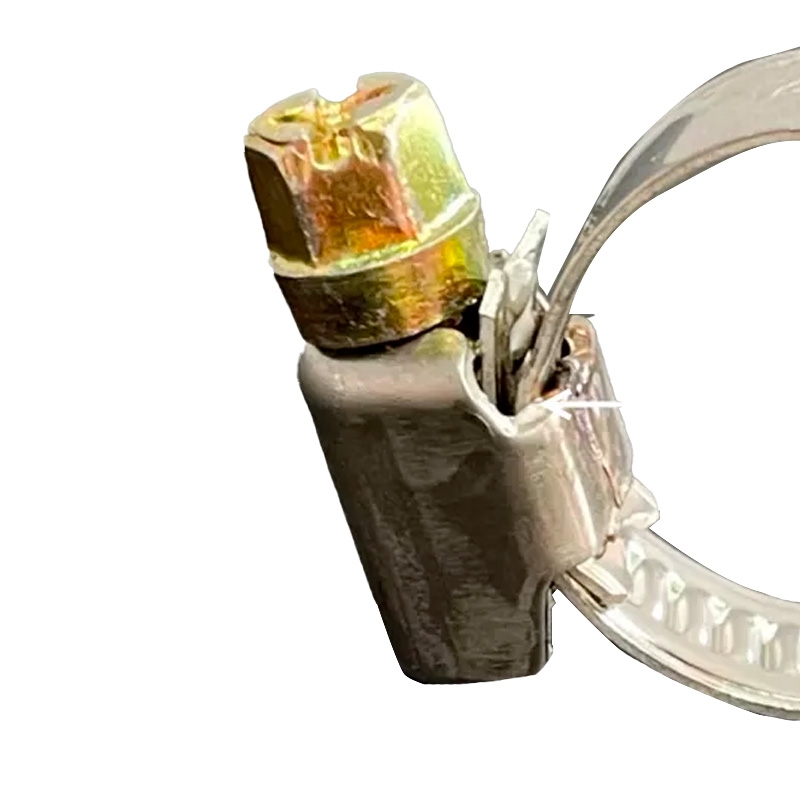 В конструкцию червячного хомута входят: прочный замок, специальный винт для затяжки хомута и штампованная лента с зубчатой дорожкой. Края ленты отбортованы, что позволяет защитить руки от травм и не повреждать поверхность, на которую они монтируются. Для увеличения прочности, лента и замок сварены в одну конструкцию, что гарантирует отличную работу хомута в условиях сильной вибрации и высоких механических нагрузок. Устройство червячных хомутов обеспечивает их многократное использование, при этом самопроизвольное ослабление хомута — невозможно. Червячные хомуты выполнены из нержавеющей стали высокого качества, что исключает возникновение коррозийных процессов и значительно повышает эксплуатационные свойства и срок эксплуатации крепежа.