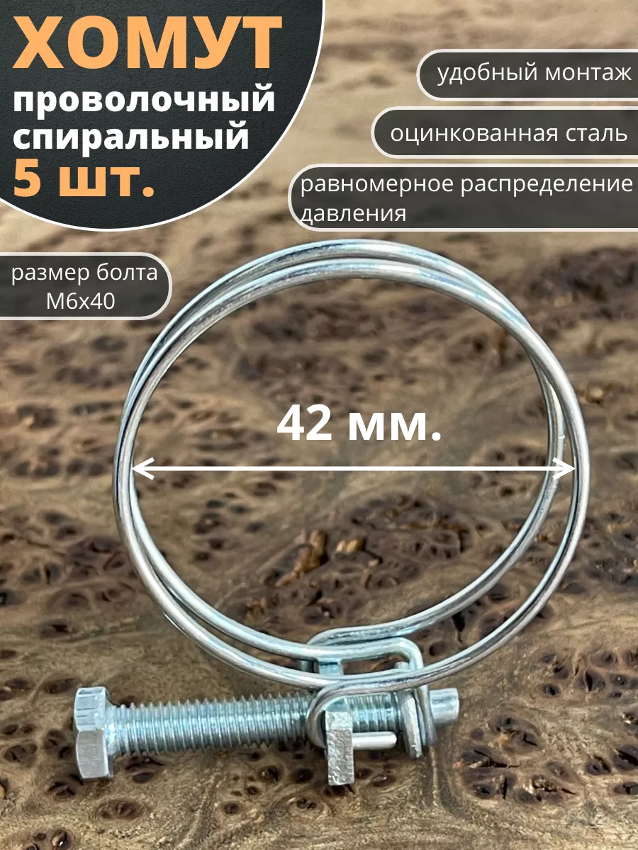 Хомут проволочный 42 мм спиральный металл ОЦ, 5 шт.