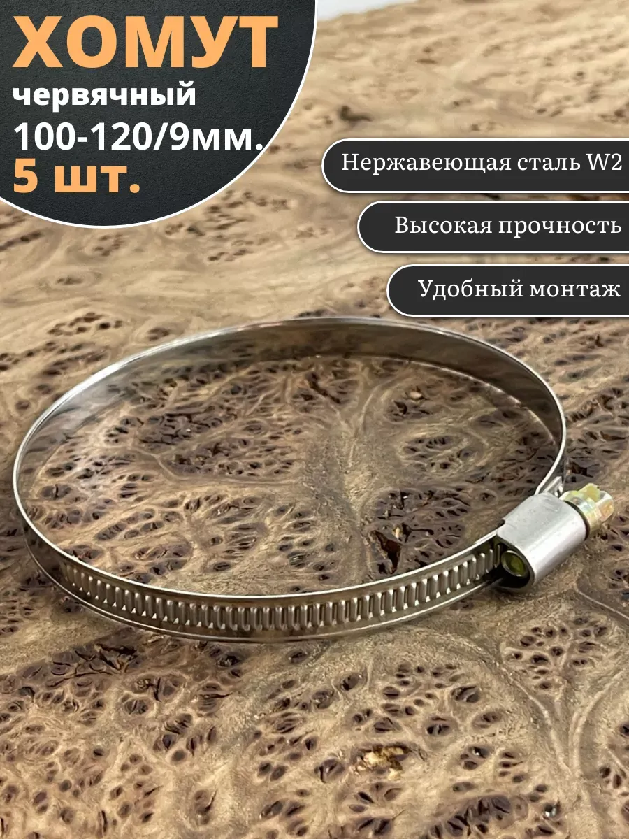 Хомут стяжка червячный 100-120/9 W2 нержавейка, 5 шт.