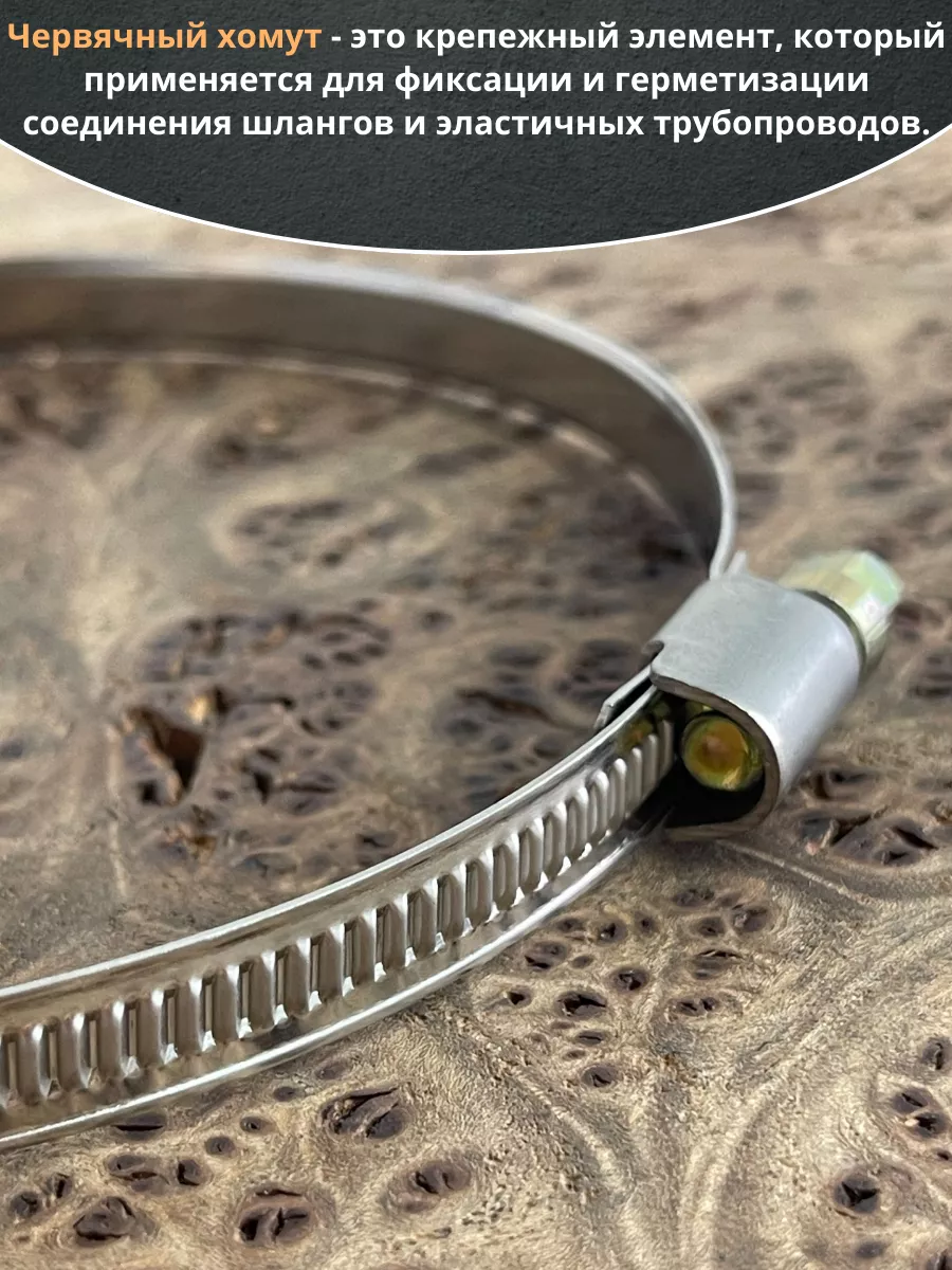 Хомут червячный используется для соединения, крепления или фиксации жестких и гибких трубопроводов, шлангов и патрубков. Изготавливается из стали в виде ленты со специальным замком. Одна половина ленты гладкая, а вторая рифленая, что гарантирует надежную фиксацию. Срок службы данного изделия напрямую зависит от правильного выбора соединения и степени подвижности.