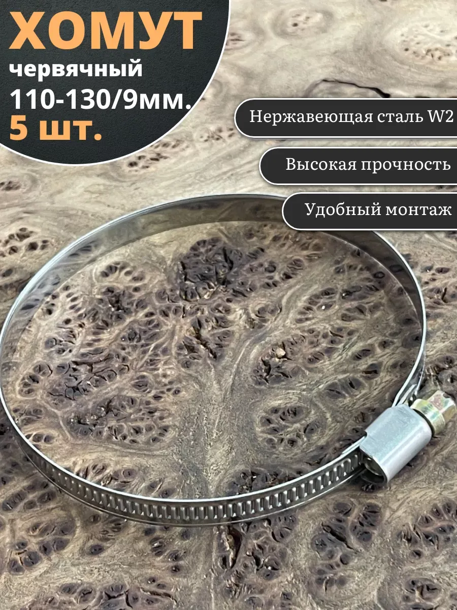 Хомут стяжка червячный 110-130/9 W2 нержавейка, 5 шт.