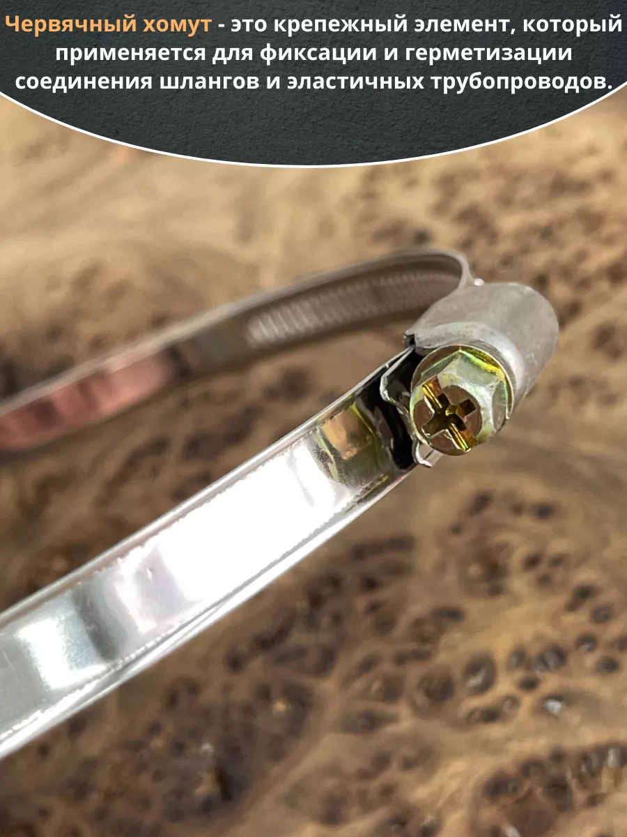 Хомут червячный используется для соединения, крепления или фиксации жестких и гибких трубопроводов, шлангов и патрубков. Изготавливается из стали в виде ленты со специальным замком. Одна половина ленты гладкая, а вторая рифленая, что гарантирует надежную фиксацию. Срок службы данного изделия напрямую зависит от правильного выбора соединения и степени подвижности.
