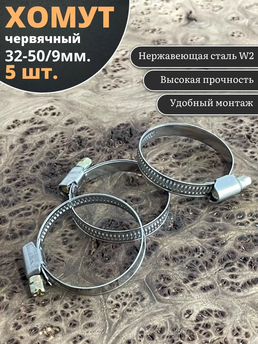 Хомут стяжка червячный 32-50/9 W2 нержавейка, 5 шт.