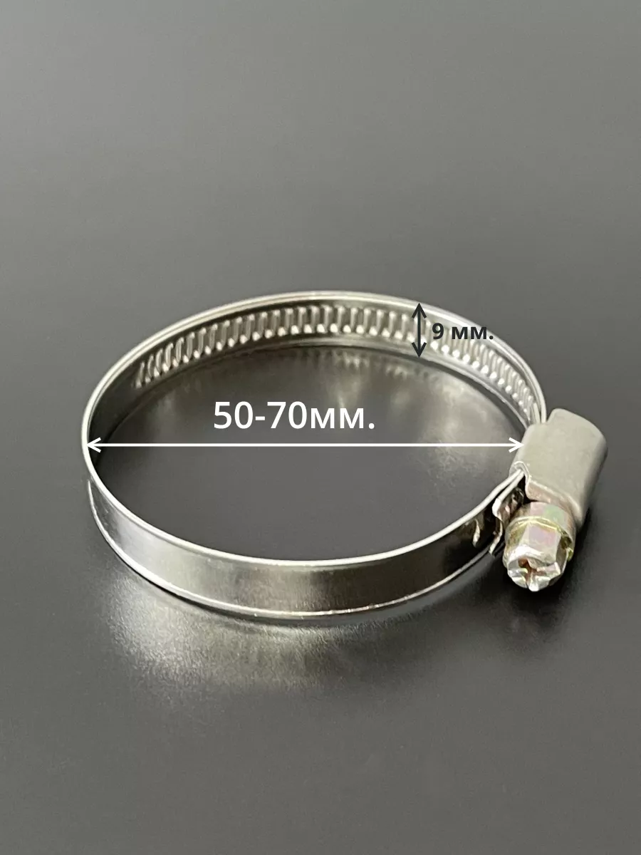 Хомут стяжка червячный 50-70/9 W2 нержавейка, 5 шт.