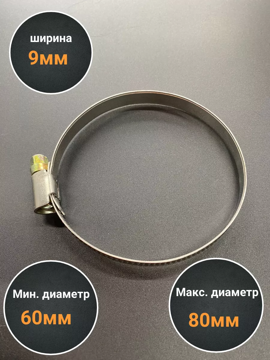Хомут стяжка металлический 60-80 мм шир.9 мм , 5 шт.