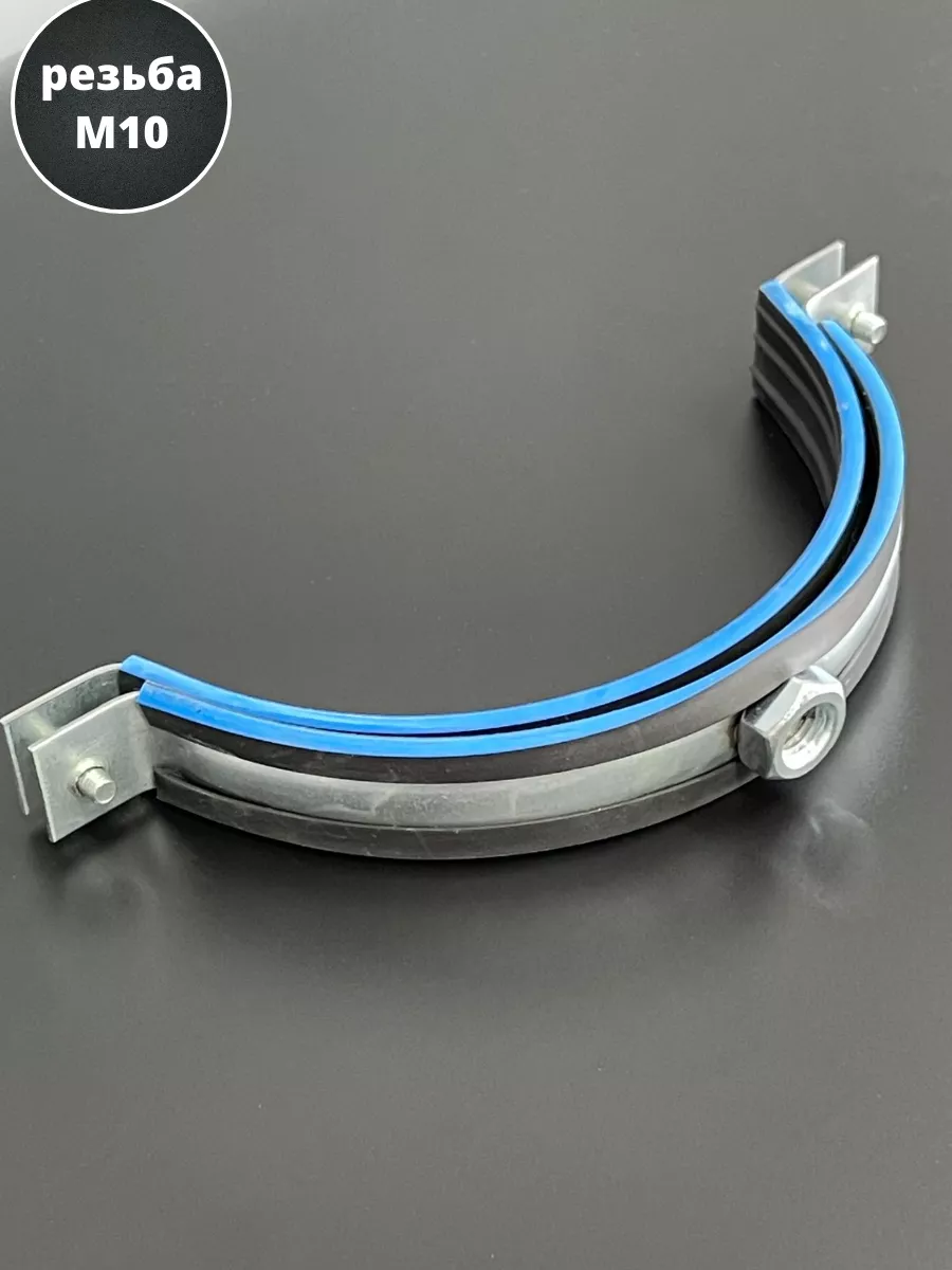 Хомут изготавливается из стали, прокладка - из высококачественной резины. Все металлические детали в обязательном порядке оцинковываются. С помощью трубного хомута трубы могут фиксироваться на полу, стенах или потолке. Данный вид хомута предназначен для надежного крепежа трубопроводов. Используется в сантехническом деле. Пользуется большой популярностью, за счет гарантии надежной фиксации. Материал основания: древесина, металл, бетон, кирпич