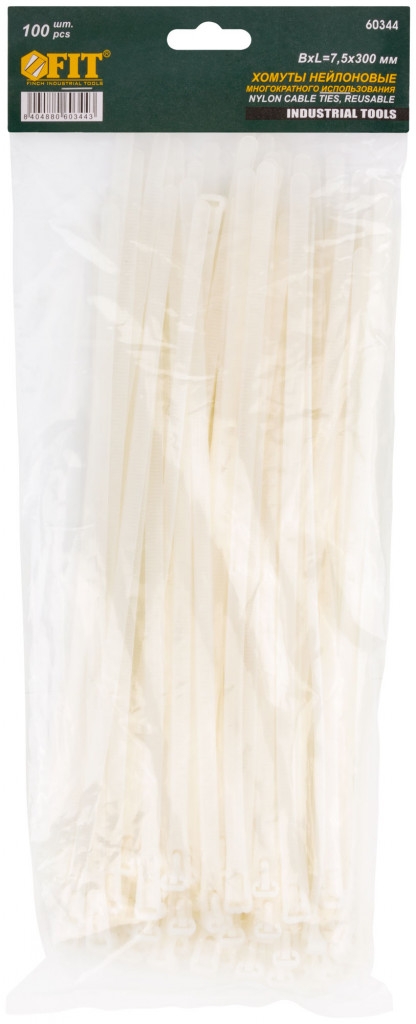 | Хомуты нейлоновые многоразовые белые для проводов 300х7,5 мм 100 шт. | 60344 | 1 шт. |