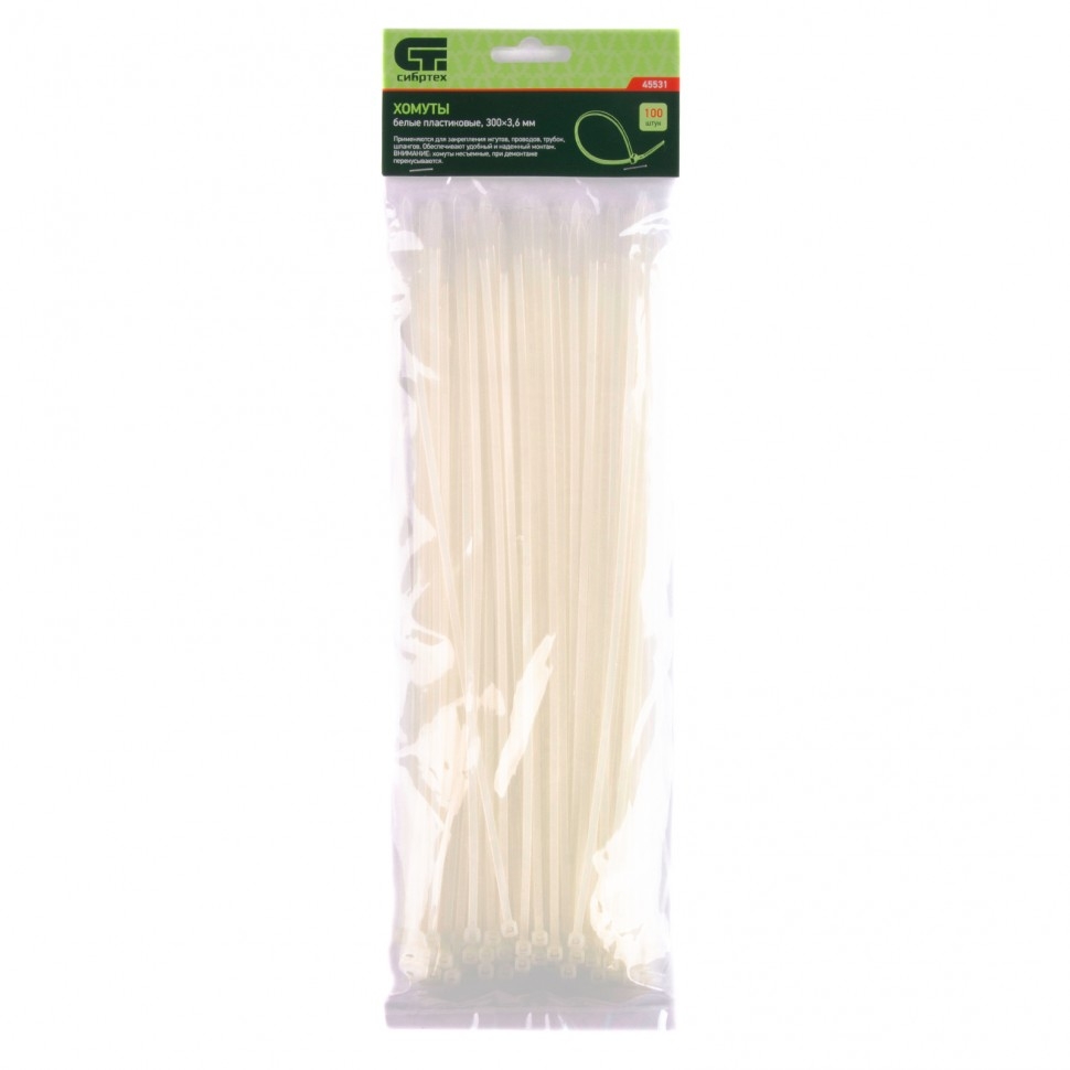 | Хомуты пластиковые белые 300х3,6 мм 100 шт. Сибртех | 45531 | 1 шт. |