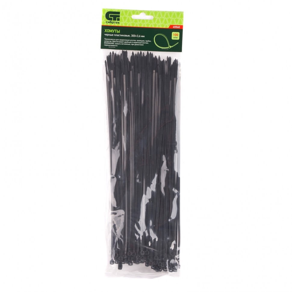| Хомуты пластиковые черные 300х3,6 мм 100 шт. Сибртех | 45560 | 1 шт. |