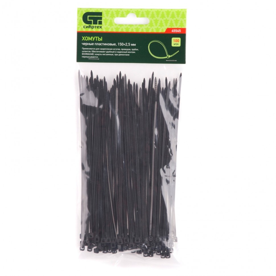 | Хомуты пластиковые черные 250х4,8 мм 100 шт. Сибртех | 45564 | 1 шт. |