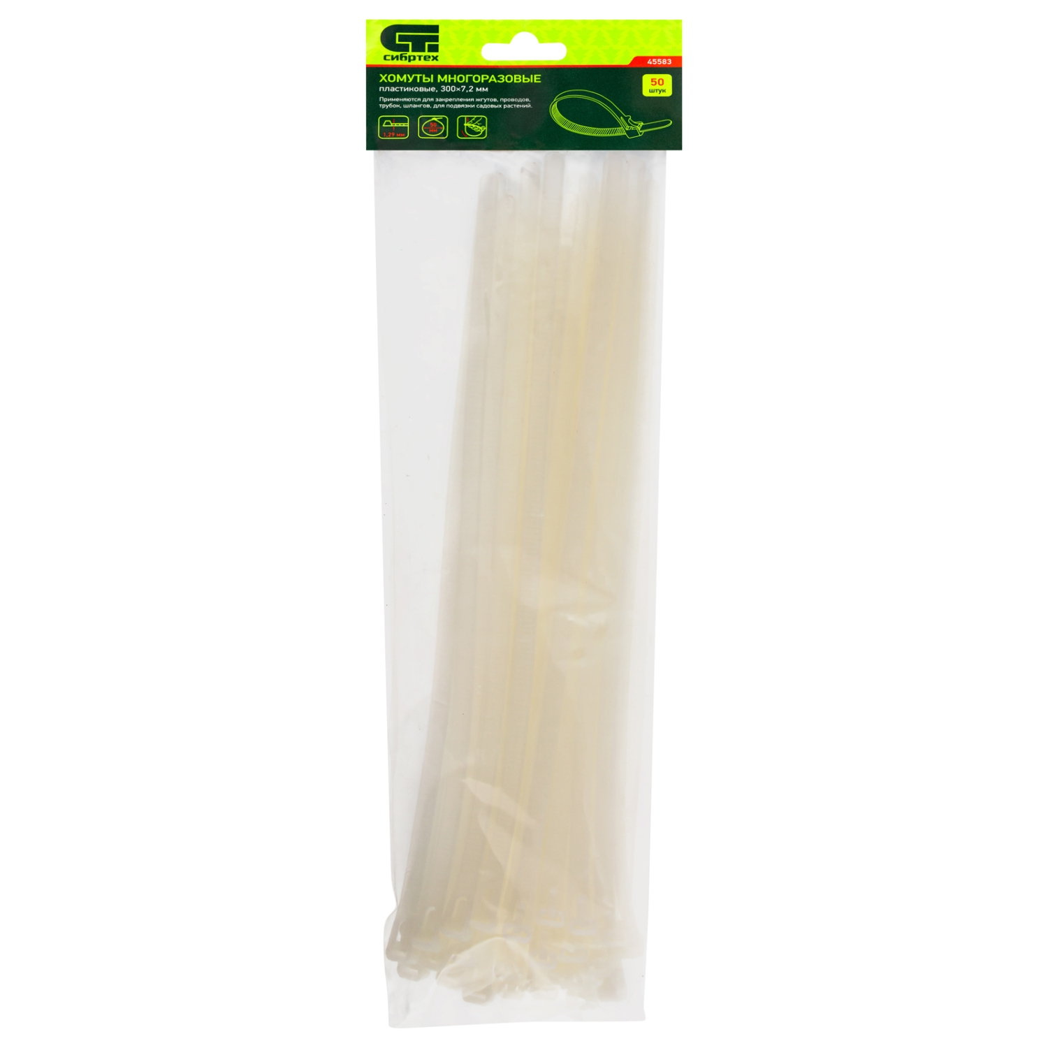 Хомуты пластиковые многоразовые 300х7,2 мм 50 шт. Сибртех