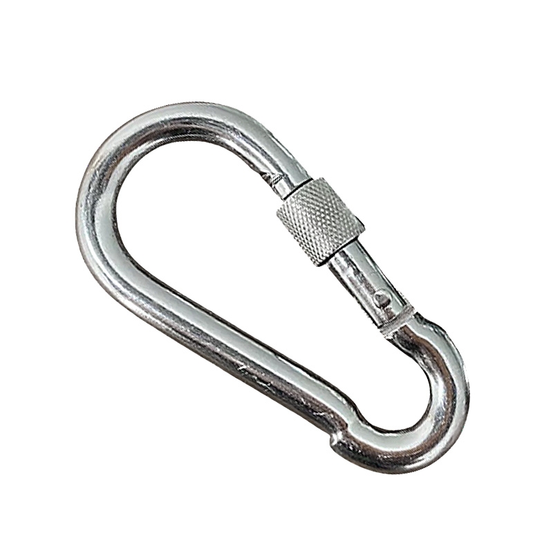 Карабин с фиксатором предназначен для использования на cтраховочных системах во время монтажных работ, а также для крепления тросов и цепей к петлям, крюкам, кольцам, монтированным в основание. Карабины этого типа используются альпинистами и строителями, в спортивной и в промышленной сфере, в области такелажных работ. Карабин с фиксатором применяется для любых разновидностей цепей, а также для любых тросов с окончанием в виде петли, кольца.